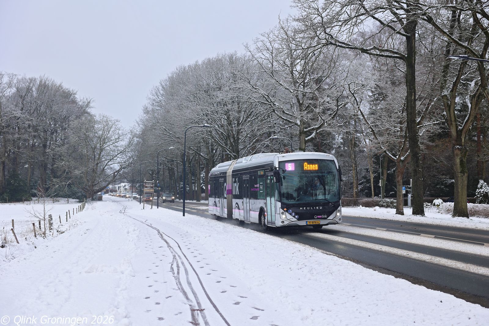 Door de kou die in januari 2026 en begin februari 2026 door Noord-Nederland trekt, raken veel bussen van Qbuzz defect. Daardoor rijden er regelmatig diverse bijzondere bussen op de Q-link-lijnen. Ook de nieuwe Yutong U15 Q-linerbussen zijn vaak te vinden, met name op Q-link lijn 3 en 4. Op 2 februari 2026 verschenen op zowel Q-link 3 als Q-link 5 opnieuw twee van deze bussen, die vrijwel de hele dag actief waren. Dankzij de pantograaf waarmee deze bussen zijn uitgerust, kunnen zij onderweg bijladen, net als de Heuliez-bussen. In de late middag kon bus 7713 op de Vossenburglaan in Meerstad worden gefotografeerd, terwijl hij op Q-link 5 halte Lammetjesplein passeerde en onderweg was richting Annen.