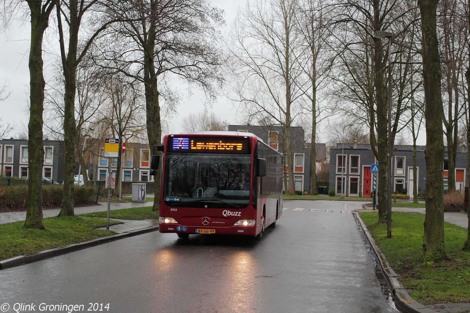In de wijk Lewenborg was helaas geen nieuwe bus op Q-link 3 te zien, maar werd gereden met standaard stadsbus 3012. Deze bus werd tijdelijk ingezet op Q-link 3 en 4 omdat alle bussen nog steeds niet geleverd waren op de afdrukdatum 8 februari 2014. Op de foto rijdt deze bus over de Loefzijde in Lewenborg en heeft bijna zijn eindpunt bereikt.