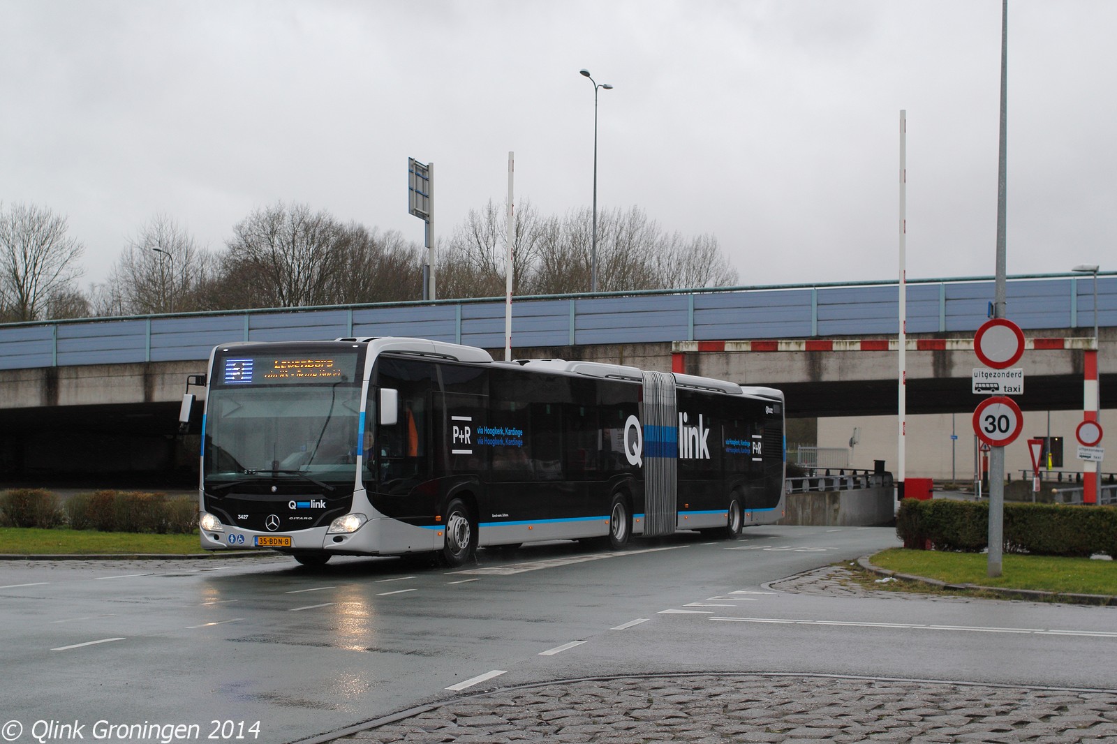 Op 8 februari 2014 werd op de busbaan bij de Koeriersterweg een vrijwel nieuwe Q-link bus gefotografeerd. In februari 2014 werden de 6 nieuwe bussen versterkt met 22 splinternieuwe bussen van het type Citaro G C2 Metrostyle. Op de foto is bus 3427 te zien, die werd ingezet op Q-link 3 naar Lewenborg