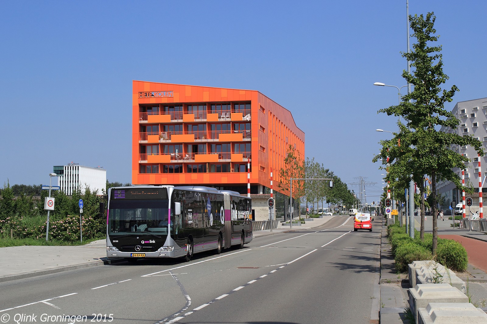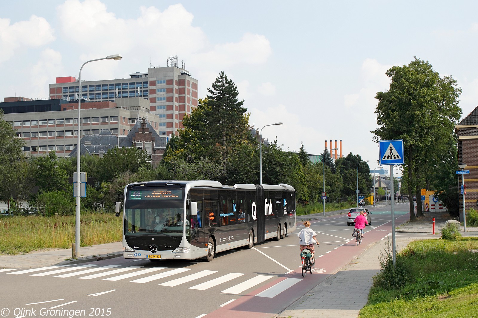 Naast de dubbelgelede bussen, was de reservebus 3400 nog steeds vaak te zien op Q-link 11. Door de omleiding in 2015, wegens de ombouw bij het Boterdiep was deze bus ook vaker aan de Bloemsingel achter het UMCG te zien. Op 20 augustus 2015 was de Capacity ook weer ingevallen op Q-link 11 als hij de fotograaf passeert.