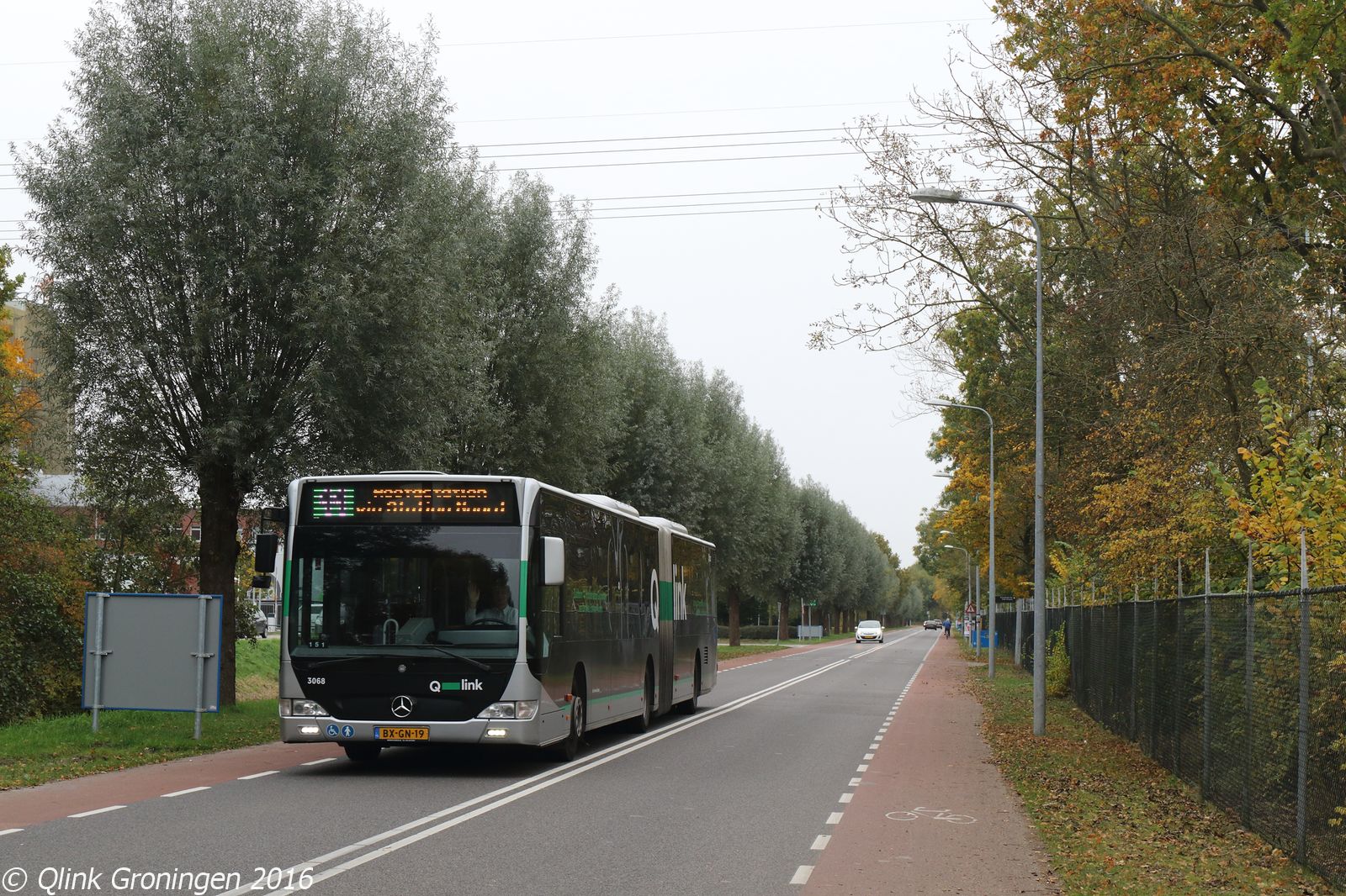 In de laatste week van oktober 2016 werd gewerkt aan de aansluiting bij de toekomstige P+R Reitdiephaven bij het huidige eindpunt van Q-link 11. Daardoor was de Professor Uilkensweg voor een deel afgesloten voor alle verkeer. Dit had ook consequenties voor Q-link 11, die over deze route rijdt. Deze lijn reed daarom via Blauwborgje in Zernike, waar normaal geen enkele bus te zien is. Op 30 oktober 2016 passeert bus 3068 de fotograaf bij het sportcomplex van Zernike op het Blauwborgje en is op weg richting Hoofdstation.