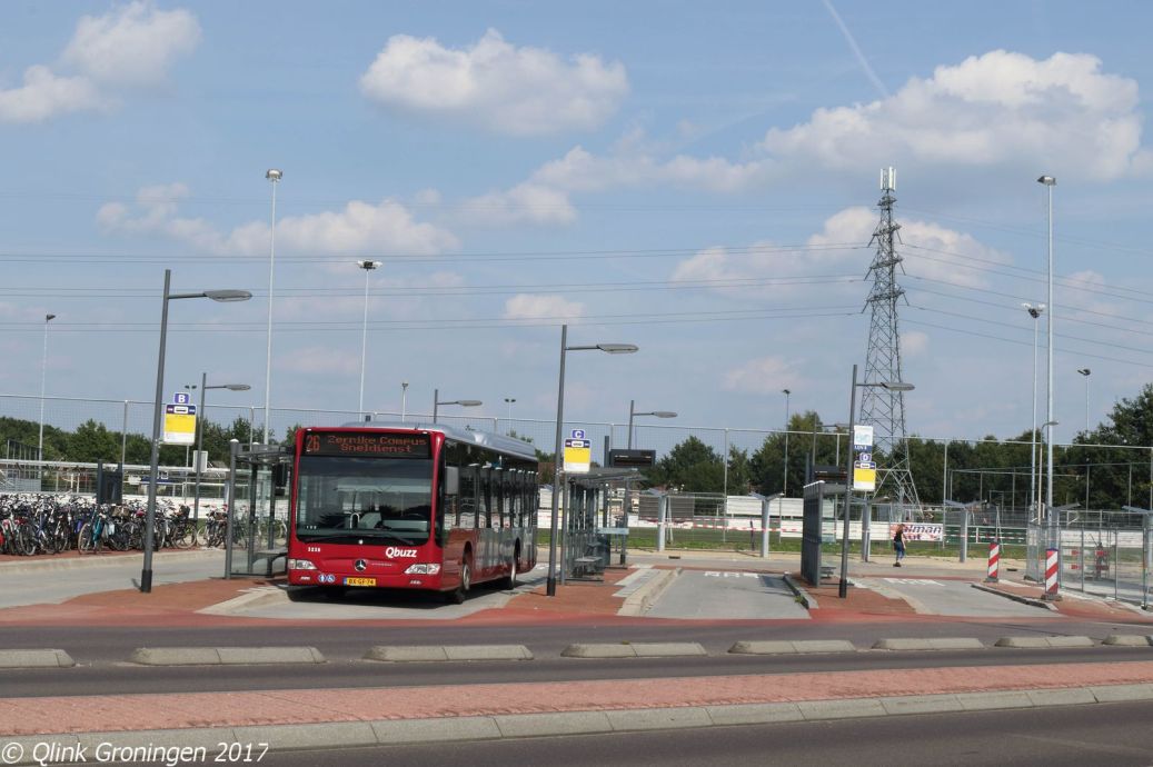In december 2017 werden zowel lijn 25 als lijn 26 in het leven geroepen om de Q-link lijnen te ondersteunen. In de eerste periode vielen de reizigersaantallen tegen en zijn beide lijnen op 4 september 2017 in een nieuw jasje gestoken. Lijn 25, tussen P+R Haren en de Gasunie, wordt sindsdien uitgevoerd met een 8-persoons taxibusje en is in frequentie verlaagd. Lijn 26, tussen P+R Haren en Zernike, werd uitgebreid met een verlenging naar Assen, waar hij nu eindigt op het knooppunt Martin Luther Kingweg en daar de Q-liner tussen Groningen en Assen Kloosterveen versterkt. Op de foto staat bus 3238 op 3 september 2017 klaar op het laatstgenoemde knooppunt en zal zo dadelijk richting Zernike vertrekken.
