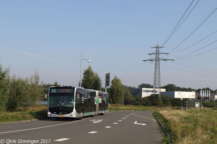 Met de grote wijzigingen in de dienstregeling van 3 september 2017 zijn vooral grote veranderingen aangebracht aan het complete Q-link netwerk. Er is een nieuwe Lichtgroene Q-link 2 geïntroduceerd. Deze lijn, die doordeweeks en zaterdags overdag rijdt, is bedoeld voor reizigers uit het zuiden of oosten die met de trein naar Groningen komen. Ze kunnen uitstappen op treinstation Europapark en daar de bus naar Zernike en het UMCG nemen. De lijn heeft het gedeelte van Q-link 5 tussen Europapark en het UMCG overgenomen en volgt vanaf dan tot P+R Reitdiep de route van Q-link 1. De laatstgenoemde lijn is hierdoor in frequentie verminderd. Op de foto is bus 3423 op Q-link 2 te zien terwijl hij op 4 september 2017 vertrekt vanaf P+R Euroborg/P3. Q-link 2 is de enige lijn die deze P+R-locatie nu nog aandoet.