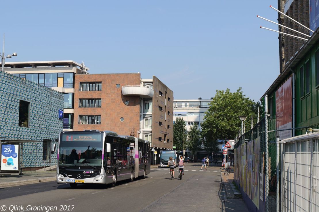 Wegens de grote brand in het casino aan het Kattendiep in Groningen werden veel buslijnen omgeleid via de Grote Markt. Zo ook Q-link 6, die normaal deze route volgt om vanaf het UMCG het Zuiderdiep te bereiken. Op 3 september 2017 passeert bus 3448 de halte Grote Markt als Q-link 6 en is op weg richting P+R Haren.