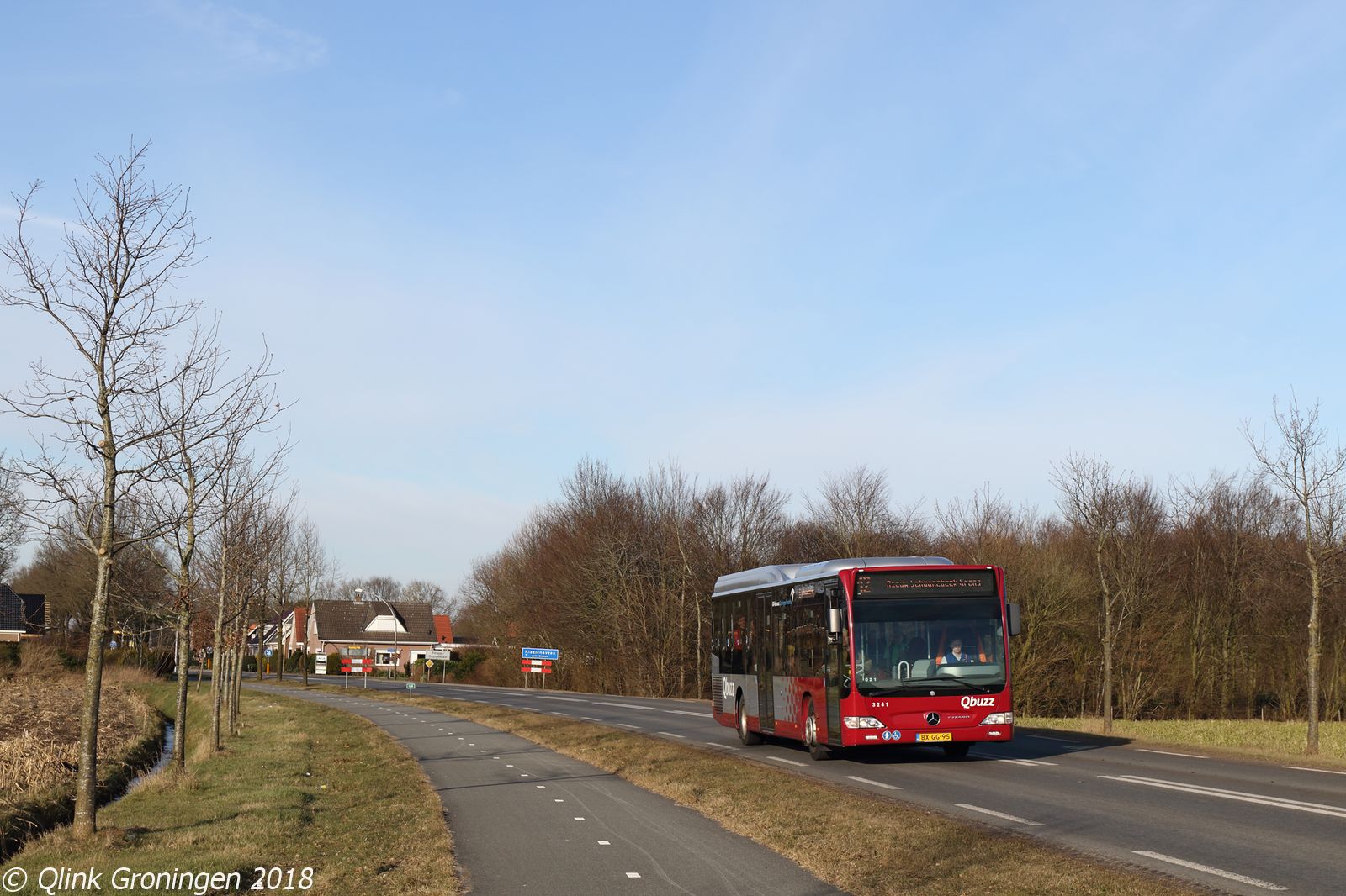 Op 23 februari 2018 reed voor het laatst Q-link 12 naar Nieuw Schoonebeek. Enkele ritten reden vanuit Emmen via Klazienaveen door naar Nieuw-Schoonebeek, echter volgden deze ritten niet de complete route van de normale lijn en werden uitgevoerd met normale rood-grijze streekbussen. Voor veel reizigers was dit onduidelijk en daarom is de keuze gemaakt om deze ritten te voorzien van het lijnnummer 126 en maken geen onderdeel meer uit van het Q-link netwerk. Op de foto passeert bus 3241 de fotograaf ter hoogte van de buurtschap Barger Oosterveen en rijdt over de Dordsedijk op weg richting Nieuw Schoonebeek op 23 februari 2018 en voorzag één van de laatste ritten op deze route.