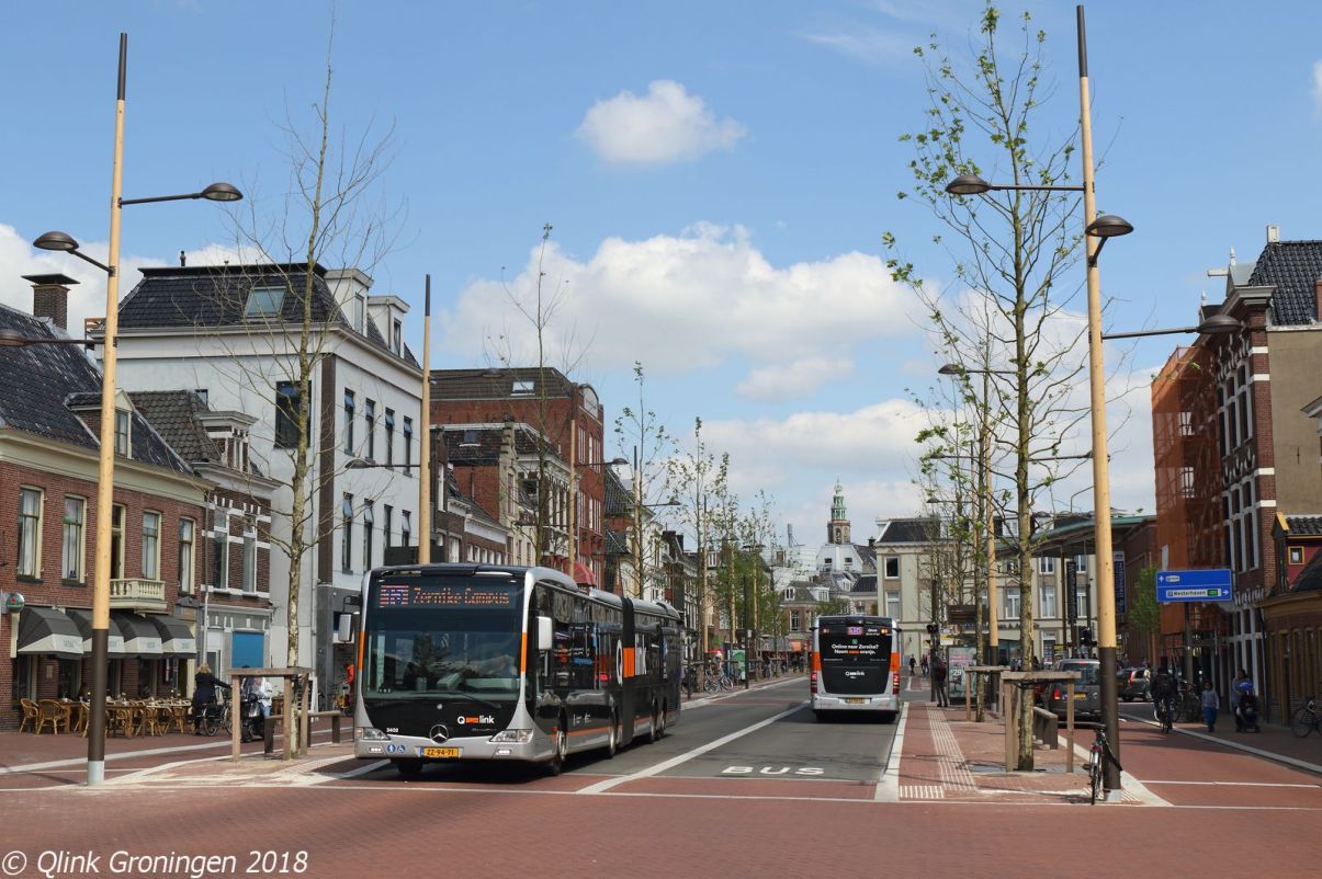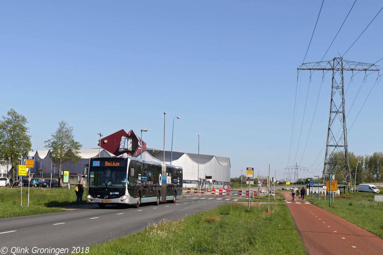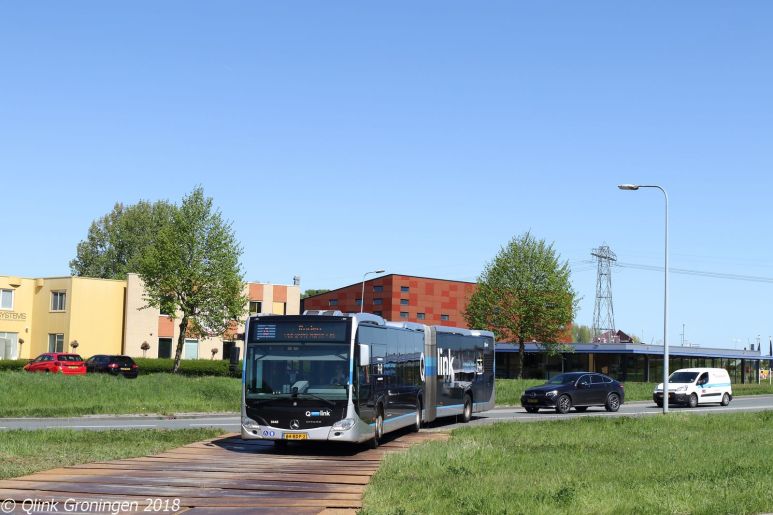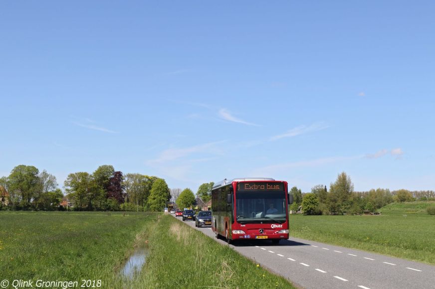 In de week van de meivakantie in 2018, was de Friesestraatweg ter hoogte van Slaperstil afgesloten. Hierdoor moest Q-link 1 noodgedwongen via het plaatsje Dorkwerd en langs het Van Starkenborghkanaal omrijden. Omdat dit niet binnen de normale rijtijden paste van de normale bussen, werd een speciale pendel ingesteld tussen het Zernike complex en Zuidhorn, welke een kwartier voor de normale dienstbus vertrok. De normale ritten op Q-link 1 eindigden in deze periode op P+R Reitdiep. Op de foto is bus 3286 te zien als hij als Q-link 1 pendel over de Hoogeweg in Dorkwerd snelt richting Zernike.