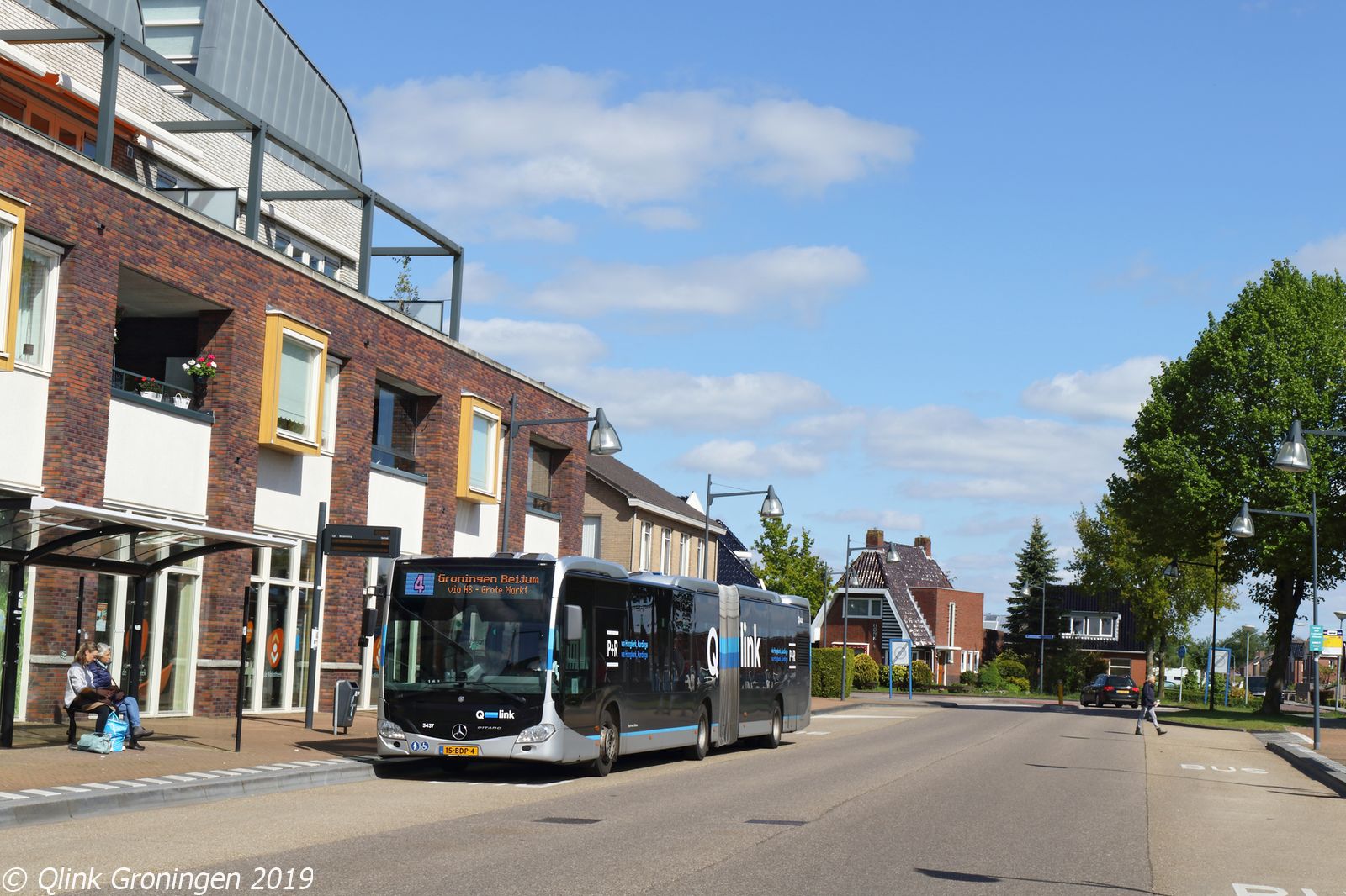 In het weekend van 11 en 12 mei 2019 was de Midwolderweg N372 in Leek afgesloten vanwege herasfalteringswerkzaamheden en de herinrichting van enkele haltes aan deze weg. Dit alles vond plaats in het kader van HOV Leek, dat ervoor moet zorgen dat de bussen tussen Groningen en Leek binnen 27 minuten op het Hoofdstation moeten zijn. Vanwege de afsluiting van de genoemde weg reed Q-link 3 vanaf Leek Centrum via Nietap en Roden naar Groningen, waardoor de bus op plaatsen kwam waar normaal gesproken geen Q-link bus te zien is. Op de foto is bus 3434 te zien ter hoogte van de halte Meerweg in Nietap, rijdend als Q-link 3 richting Groningen.