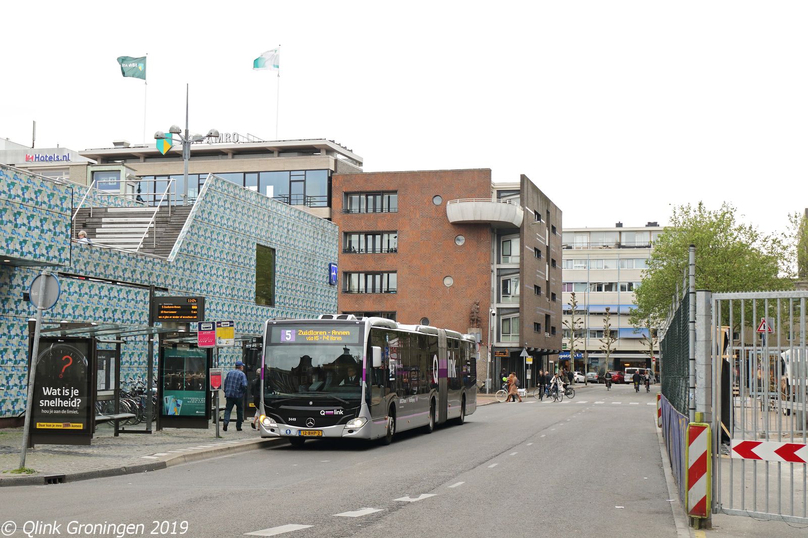 Zoals eerder bekendgemaakt, zullen aan het einde van het jaar de dieselbussen van verschillende Q-link lijnen plaatsmaken voor elektrische bussen. Deze elektrische bussen, van het merk Heuliez, zullen vanaf 15 december 2019 gaan rijden op de Q-link lijnen 3, 4 en 5. Op de foto is bus 3449 te zien op Q-link 5 bij de halte Grote Markt op 26 mei 2019. Deze bus zal naar verwachting aan het einde van het jaar waarschijnlijk op Q-link 6 of Q-link 12 gaan rijden, terwijl de oude paarse Q-link bussen zullen verdwijnen. De Heuliez-bussen zullen echter pas in december 2020 volledig verschijnen op de Grote Markt.