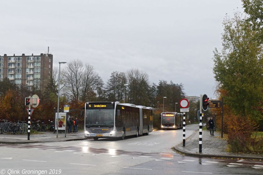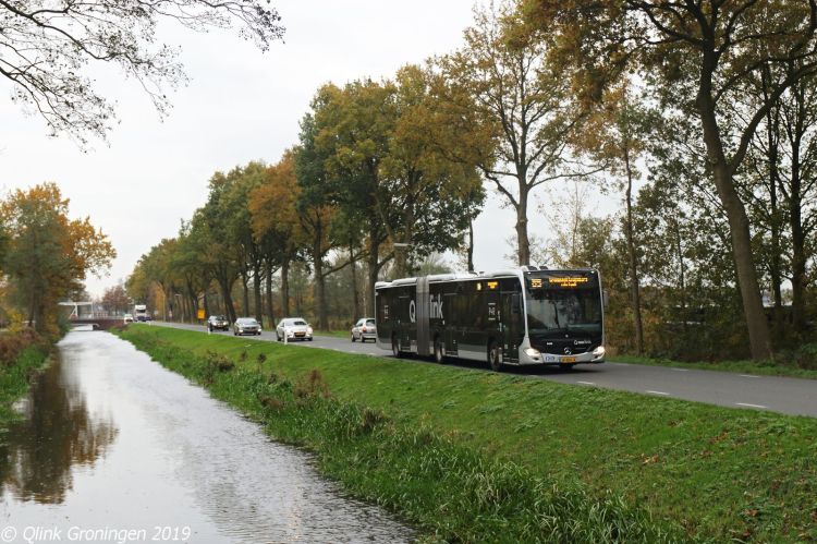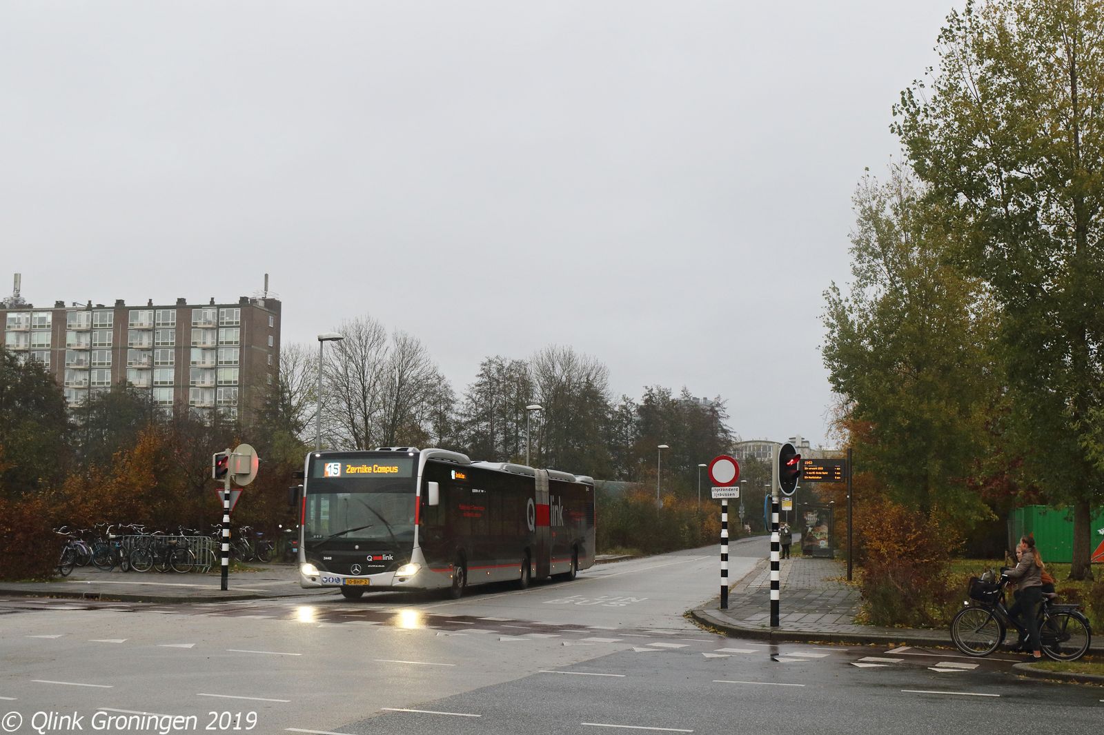 Wegens de laatste modificaties aan de Q-link Oranje bussen voor de nieuwe concessie wordt op Q-link 15 sinds 13 november 2019 tijdelijk een nieuwe streekgelede streekbus ingezet. Deze bussen van het type Mercedes Benz Citaro G C2 zullen de bussen uit de 3500 serie vervangen, die nu wel eens op de Q-link lijnen te zien zijn. Op de foto is bus 7508 te zien op de Peizerbaan bij de Koeriersterweg, waar de bus op 18 november 2019 op weg is als Q-link 15 naar de Zernike Campus.