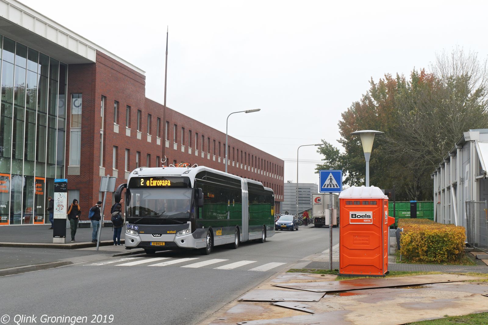 Na de foto in de wijk Europapark werd getogen naar de Zernike Campus, waar Q-link 2 veel studenten heen brengt die hier hun studie doen. Op 11 november 2019 reed zoals eerder geschreven een nieuwe gelede VDL stadsbus op Q-link 2, vanwege de laatste modificaties aan de Q-link Groen bussen voor de nieuwe concessie. In de normale dienst zouden de nieuwe Gelede Stad Citea-bussen hier echter nooit gaan komen. Op de foto is bus 7055 te zien bij de halte Zernikeplein als hij op weg is als Q-link 2 richting Station Europapark.