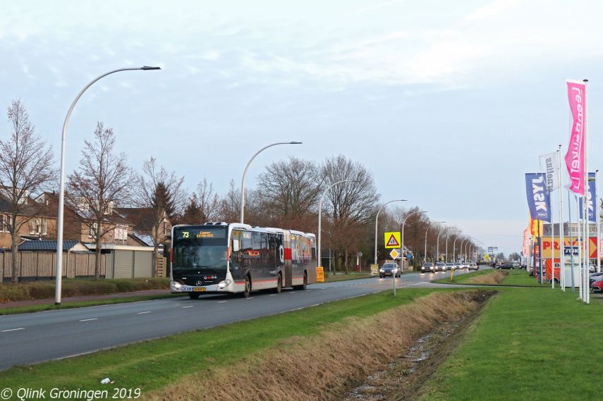 Nadat eerder al op Q-link lijn 3 een nieuwe elektrische streekbus reed, kwam op 17 december 2019 een elektrische streekbus tot inzet op Q-link 4. De bus werd hier op ingezet omdat waarschijnlijk niet genoeg bussen beschikbaar waren om de ritten op deze lijn te rijden. Op de foto komt de bus 7323 voorbij op de Peizerbaan in Groningen en is op weg richting Roden als Q-link 4.