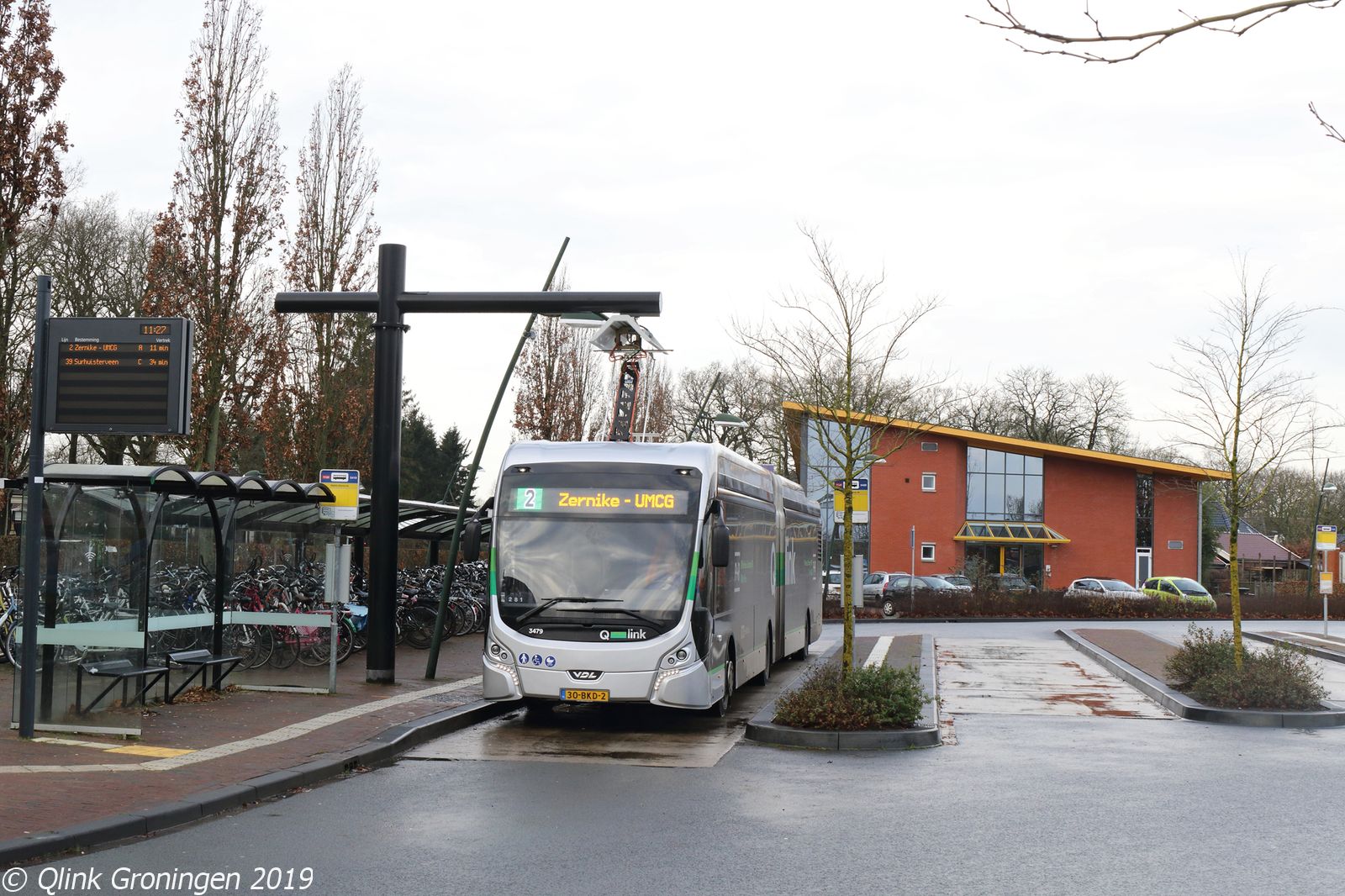Met de start van de nieuwe concessie en de nieuwe dienstregeling op 15 december 2019 werden de routes van Q-link 1 en 2 ook omgewisseld. Q-link 2 ging voortaan deels doorrijden naar Zuidhorn, en Q-link 1 eindigt sindsdien op P+R Reitdiep. Dit is gedaan om te zorgen dat de aansluitingen op de treinen kunnen worden verbeterd. Op 17 december 2019 staat bus 3479 gereed bij de halte in Zuidhorn om zo als Q-link 2 te vertrekken richting Station Europapark.