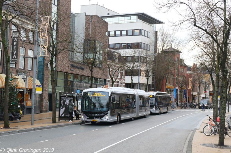 Na de foto op P+R Haren, werd naar het centrum van Groningen gegaan. Hier heeft inmiddels ook de nieuwe Heuliez-bus zijn intrede gedaan. Op de foto is de reservebus 7401 te zien, die nu voornamelijk nog op Q-link 4 rijdt, maar waarschijnlijk in de toekomst op alle Q-link-lijnen te zien zal zijn die met elektrische bussen rijden. Op de foto van 17 december 2019 houdt de bus halt bij de halte Zuiderdiep en zou zo als Q-link 4 verder rijden richting Beijum.