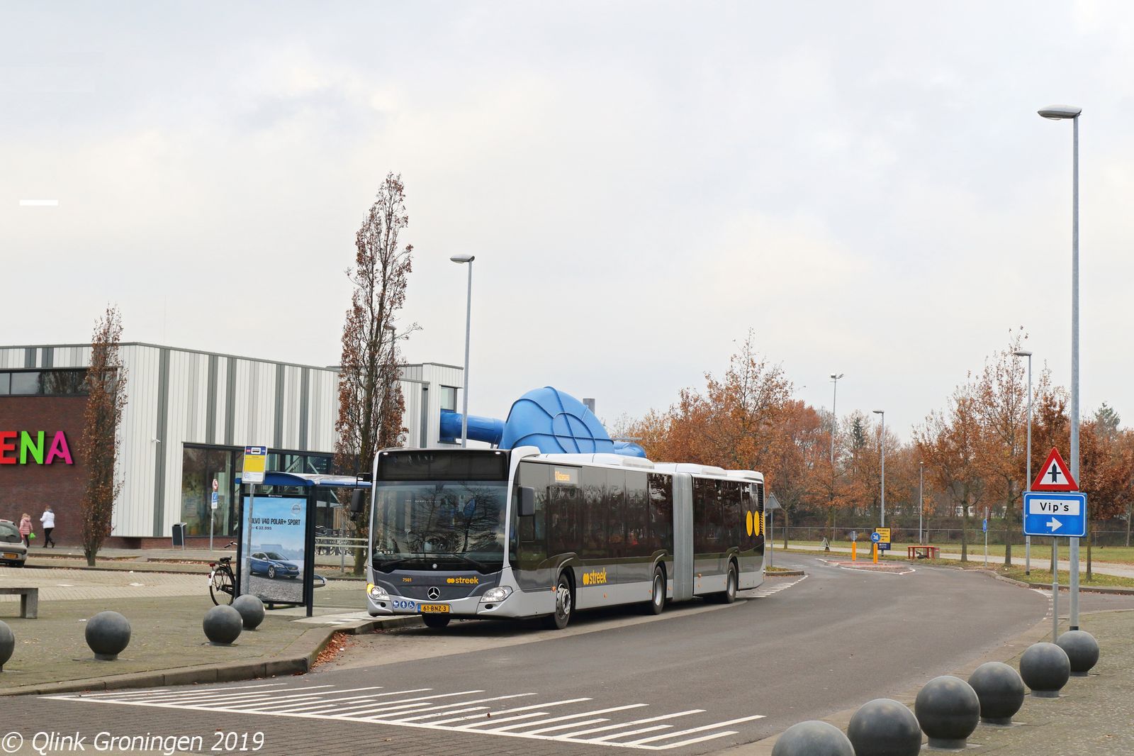 Nadat eerder bus 7508 op Q-link 3 in het donker werd gefotografeerd, werd op 1 december 2019 deze bus bij daglicht op deze lijn gefotografeerd. Deze nieuwe gelede streekbus rijdt tijdelijk op de Q-link lijnen zodat de bussen die mee gaan met de nieuwe concessie de laatste modificaties kunnen ondergaan. Op de foto is de bus te zien terwijl hij over Kluiverboom snelt in de wijk Lewenborg en op weg is richting Leek als Q-link 3.