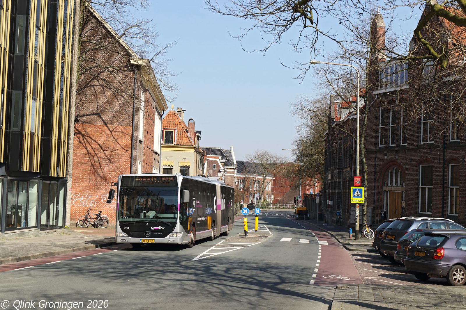Op 27 maart 2020 werd in de avonduren een zeer grote omleiding van kracht voor de Q-link-lijnen in de binnenstad van Groningen. Dit vanwege de bouw van een nieuw busknooppunt bij UMCG Noord, zoals eerder beschreven. Deze omleiding zorgde ervoor dat Q-link 5 in ieder geval tot begin november 2020 niet over de Grote Markt zou rijden. Hierdoor was dit waarschijnlijk de laatste dag dat de dieselbussen van deze lijn op deze route te zien waren, aangezien deze binnenkort worden vervangen door de nieuwe Heuliez-bussen. Op de foto van 27 maart 2020 komt de oude paarse Q-link-bus 3056 op de allerlaatste dag door de Sint Walburgstraat en is op weg naar de Grote Markt, Zuidlaren en Annen op Q-link 5.