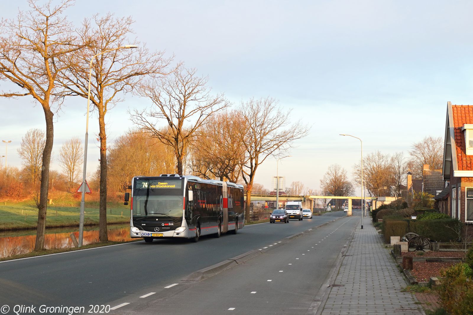 Naast diverse andere lijnen is ook op lijn 76 in de ochtenduren een Q-link-bus te zien in Hoogezand. Deze ritten zouden normaal gesproken moeten worden gereden met Q-link Paars Euro 6-bussen, maar door de latere levering van de Heuliez-bussen verschijnen ook de oude Q-link EEV-bussen op deze ritten, zoals de 3067 in de witte Q-link reservekleurstelling. De bus rijdt hier op 13 maart 2020 over de Troelstralaan in Hoogezand, op weg naar Groningen als lijn 76.