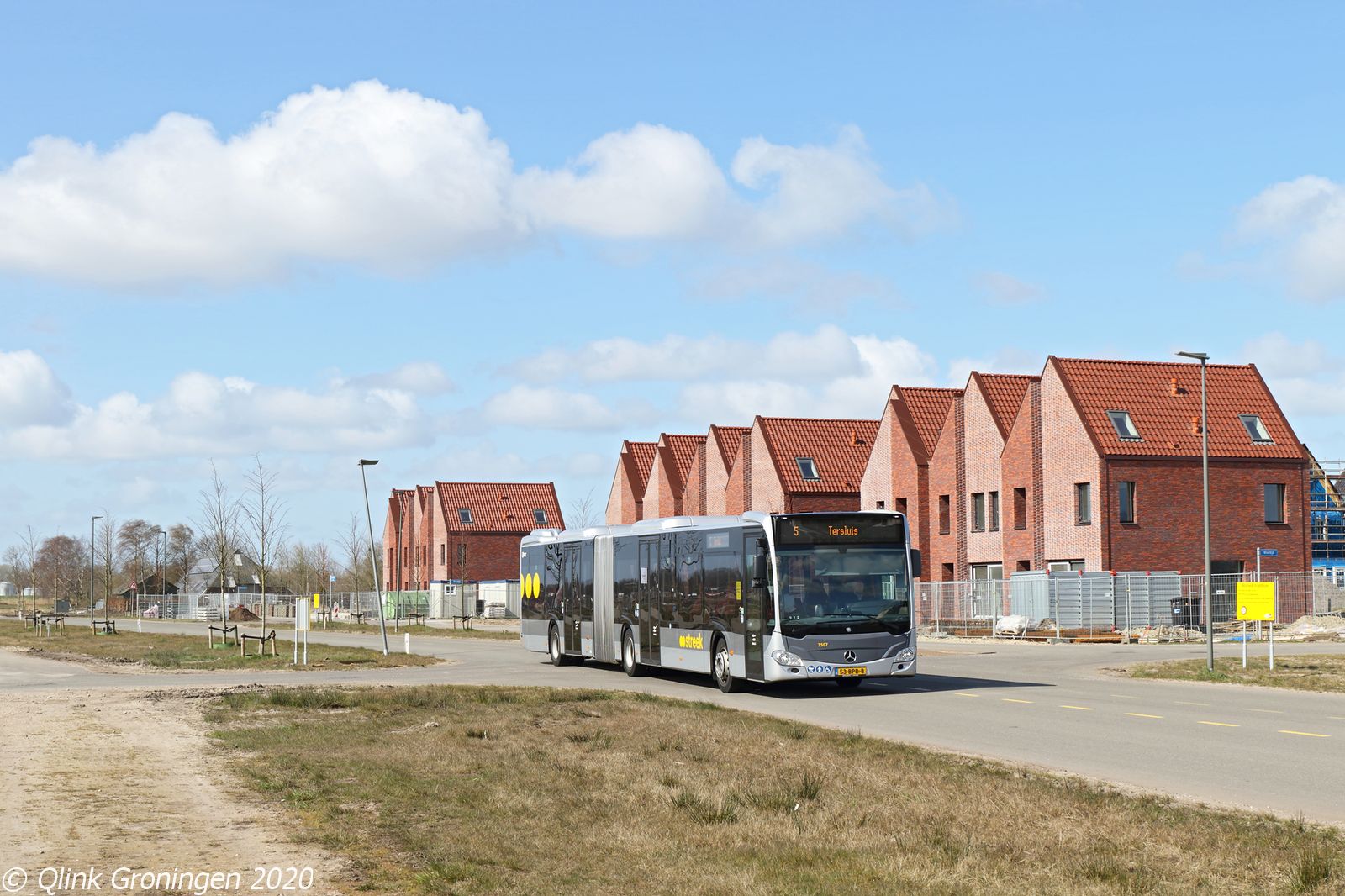 Ondanks de coronacrisis, waarbij op zes dagen van de week een zaterdagdienst wordt gereden, belandde een gelede streekbus meerdere dagen op Q-link Paars lijn 5. Dit was waarschijnlijk omdat diverse Q-link Paarse bussen staan opgelegd op diverse stallingen in de regio. Op de foto is bus 7507 te zien op de Vossenburglaan in Meerstad en is op 29 maart 2020 onderweg in de steeds meer volgebouwde wijk Tersluis naar het eindpunt Tersluis.
