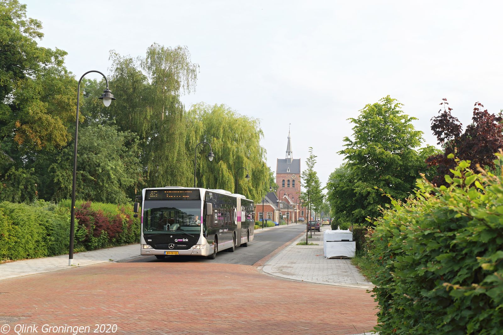 Even later rijdt de lijn door op de zeer fraaie lijn 45, die vanuit de Eemshaven via onder andere de plaatsen Spijk, ’t Zandt en Loppersum naar Middelstum rijdt. Deze lijn werd voor december 2019 bediend door vervoerder UVO/Van Dijk en is nu overgenomen door Qbuzz en verlengd naar de Eemshaven. Op de foto passeert bus 3051 in de Hoofdstraat in ’t Zandt, waar op 19 juni 2020 op de achtergrond de Mariakerk van laatstgenoemde plaats te zien is. De bus is op weg als lijn 45 richting Middelstum.