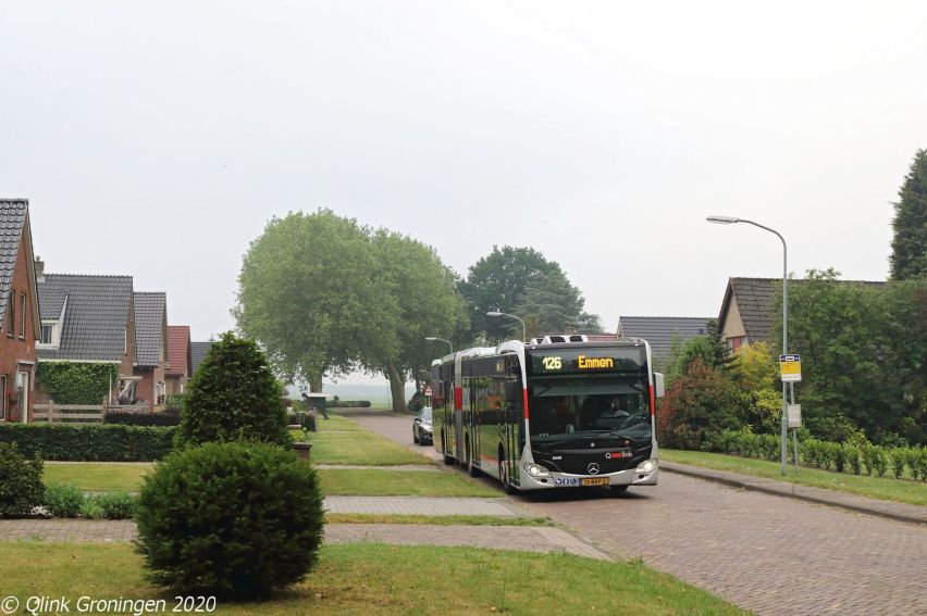 Eén keer per dag rijdt op lijn 126 tussen Nieuwe Schoonebeek en Emmen een rit met een Rode Q-link bus voordat deze bus op Q-link 12 wordt ingezet. Dit waarschijnlijk omdat op deze manier een bus kan worden uitgespaard. Opvallend hieraan is dat lijn 126 korte periode echter tot Q-link Rood heeft behoord, maar er nooit een Rode Q-link bus op heeft gereden. Op de foto zien we de bus 3449 de halte Bargerweg in Barger Oosterveld passeren en is op 12 juni 2020 op weg richting Emmen.