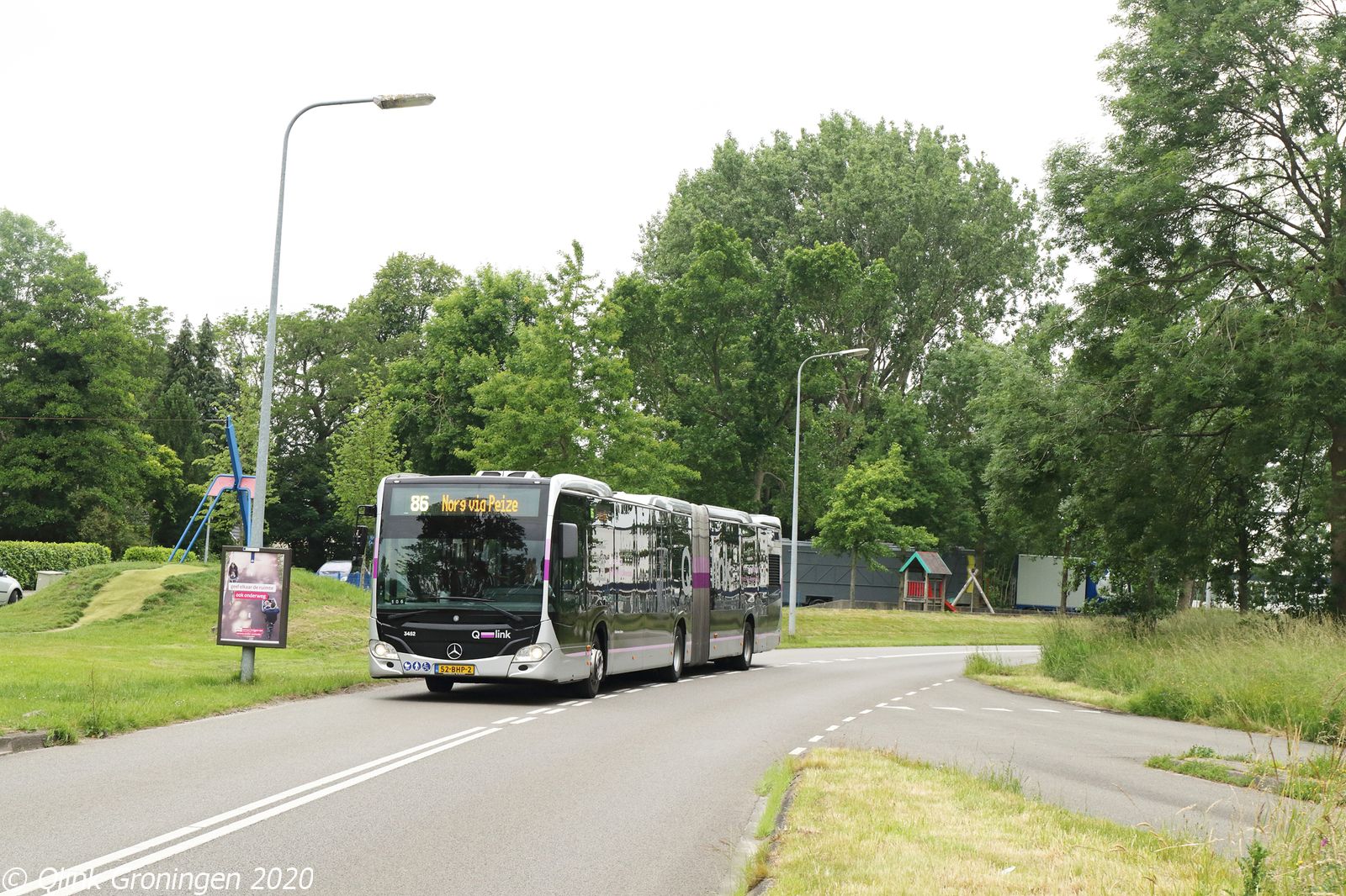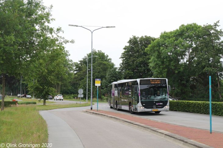 Na Noordlaren werd nog één keer doorgereden richting Groningen, waar een nieuwere Q-link Paarse dieselbus op de foto werd gezet die op een oude Q-link Paarse busomloop reed. Op de foto rijdt bus 3452 op lijn 86 tussen Groningen en Norg via Peize. De bus rijdt hier over de Peizerweg, die door de invoering van Q-link bijna compleet zijn bediening verloor. De bus is op 10 juni 2020 op weg naar Norg.