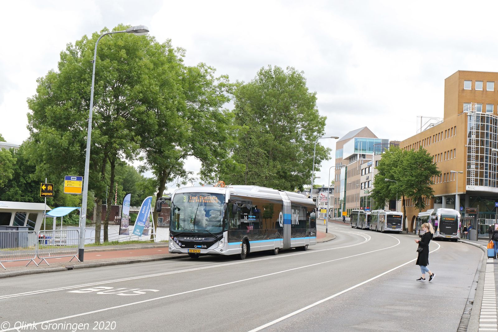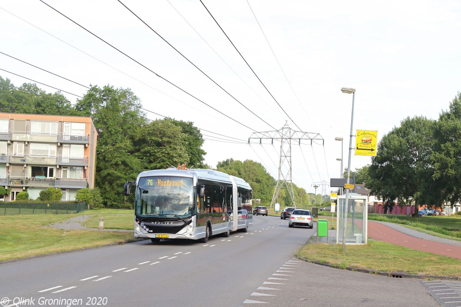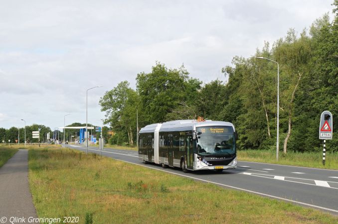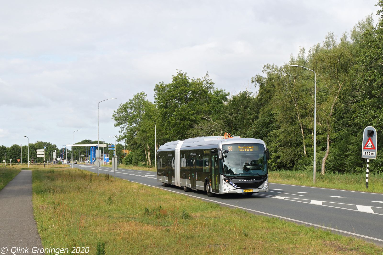 Elke dag rijdt er op Q-link 50 één rit met een elektrische Heuliez-bus van Assen naar Groningen. Sinds 2 juni 2020, toen de volledige dienstregeling weer van kracht werd, is vrijwel dagelijks op deze lijn een elektrische Heuliez-bus te zien. Op de foto van 9 juni 2020 rijdt bus 7448 net uit De Punt en is op weg naar Groningen.