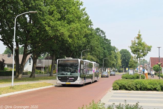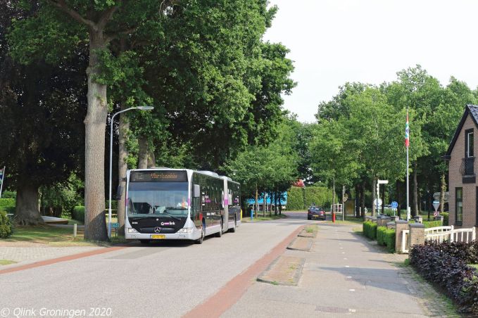 Nadat de Q-link Paarse bus diverse ritten op lijn 74 tussen Veendam en Emmen heeft gereden, gaat hij Emmen na zijn laatste rit volgens de omloop over in Lijn 44 naar Schoonebeek via het Drentse plaatsje Erica. De bus komt hierbij door plaatsen waar het tot voor kort ondenkbaar was om daar een Groninger Q-link bus te zien. Op de foto komt bus 3096 door de Havenstraat in Erica gesneld en is op 3 juni 2020 op weg richting Schoonebeek.