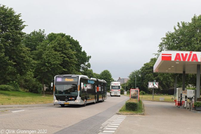 Doordat de laadvoorziening in Annen nog steeds niet gereed is, rijden sinds de start van de normale dienstregeling op 2 juni 2020 weer deels dieselbussen op Q-link. Dit keer in de vorm van Q-link Oranje Capacity bussen die de oude Q-link Paarse bussen vervangen op de streek. Op 4 juni 2020 rijdt bus 3401 langs Tankstation Stadman in Annen, als hij bijna het eindpunt in Annen heeft bereikt.