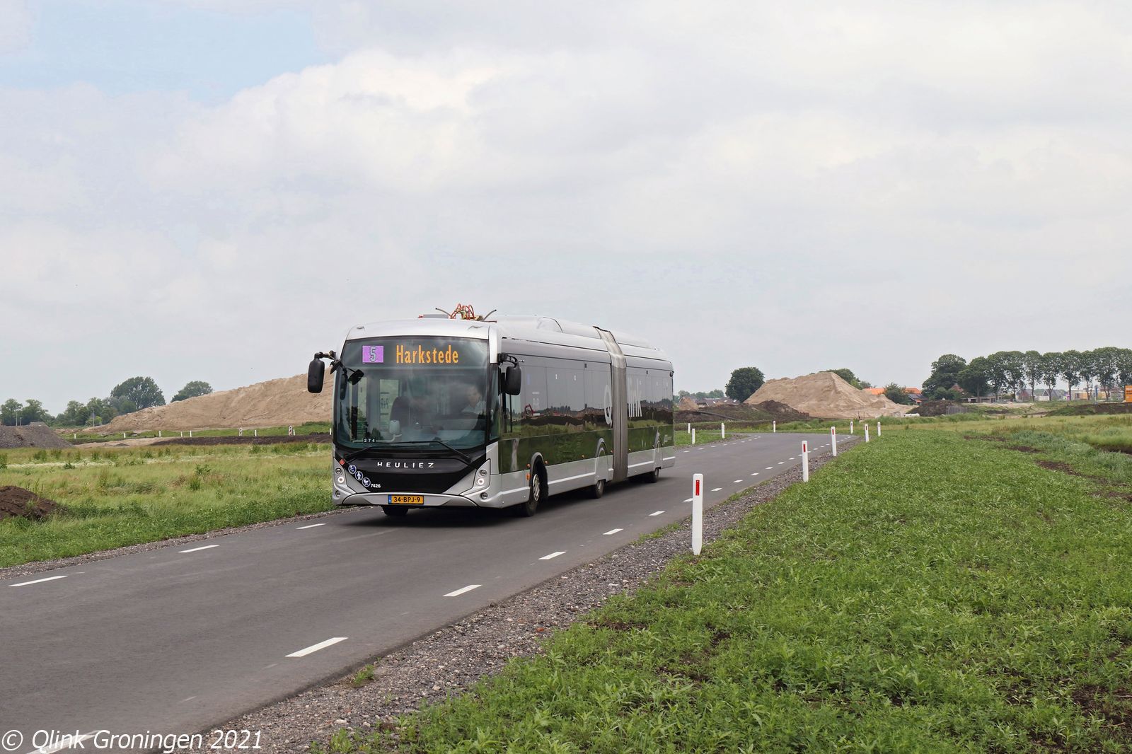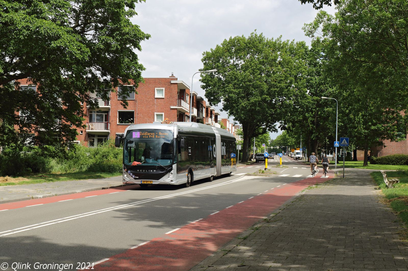 Wegens werkzaamheden aan een nieuw viaduct ter hoogte van de Brailleweg en Julianaplein in de stad Groningen werd in het weekend van 26 en 27 juni 2021 de bussen vanuit de richting Haren naar Groningen omgeleid via de Rijksstraatweg in Haren en de Hereweg in Groningen. Ook Q-link 5 reed hier via de route van streeklijn 50 tussen Groningen en Haren. Op de foto passeert bus 7438 de fotograaf op de Rijksstraatweg in Haren bij de halte Sportpark Esserberg en is op 27 juni 2021 op weg richting Groningen UMCG en het Hoofdstation.
