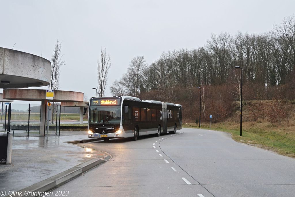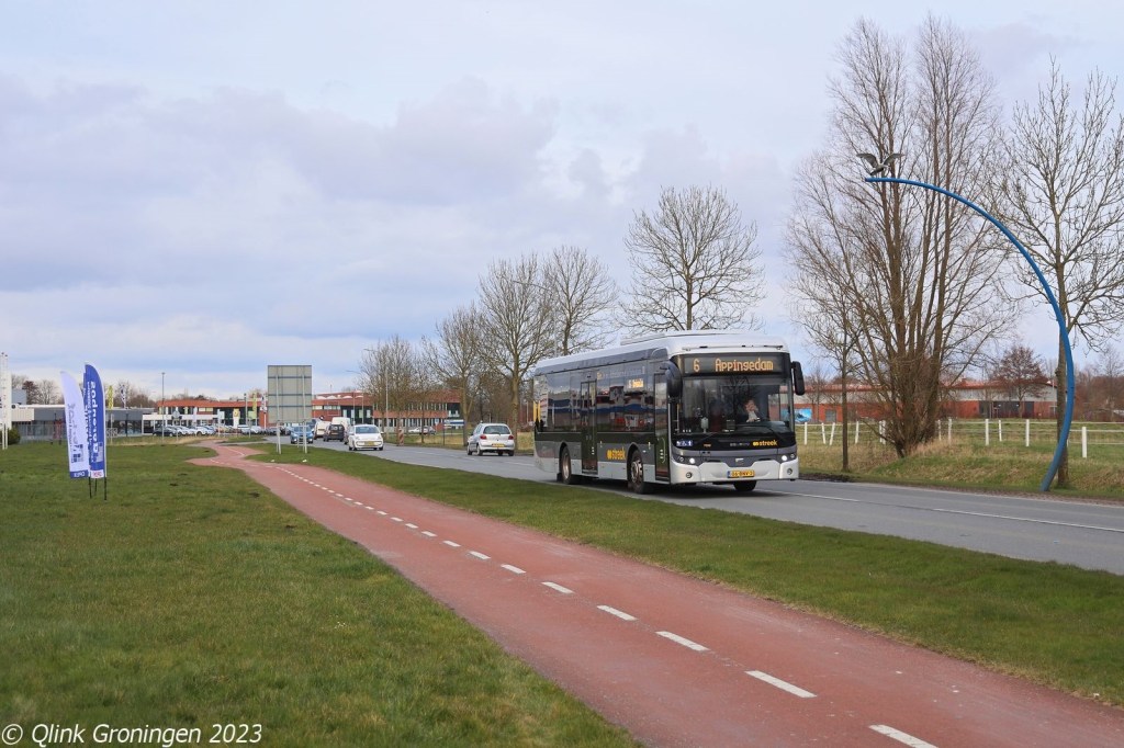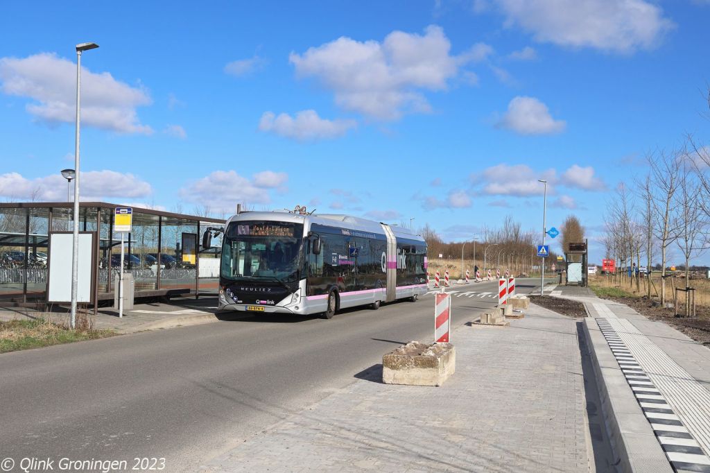 Sinds december 2022 rijdt op lijn 76, die tussen Groningen en Hoogezand een enkele rit met de Q-link Oranje bussen. Hierdoor zijn sinds de start van de nieuwe concessie GD deze bussen weer dagelijks gepland op een streeklijn en is het ook weer mogelijk deze lange bussen van 19,5 meter weer te zien op andere plekken van Q-link 15. Op de foto is bus 3407 te zien, die hier halteert bij de oude eindhalte van de P+R Citybus, ter hoogte van de halte Bornholmstraat. Hier laat de bus enkele reizigers uitstappen. Daarna zou de bus op 10 maart 2023 weer verder rijden richting Hoogezand op lijn 76.