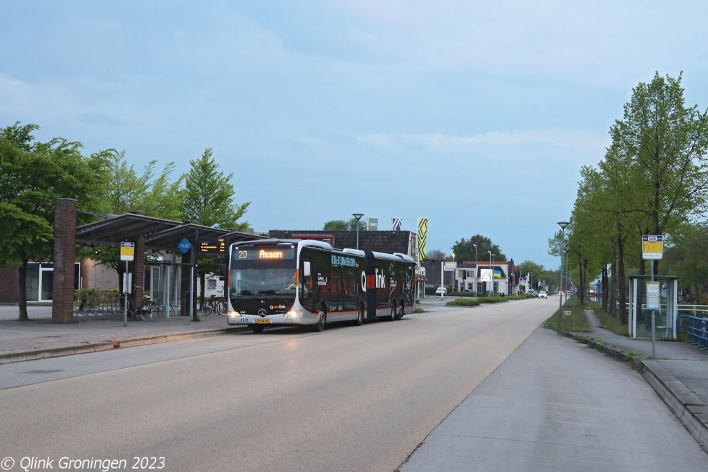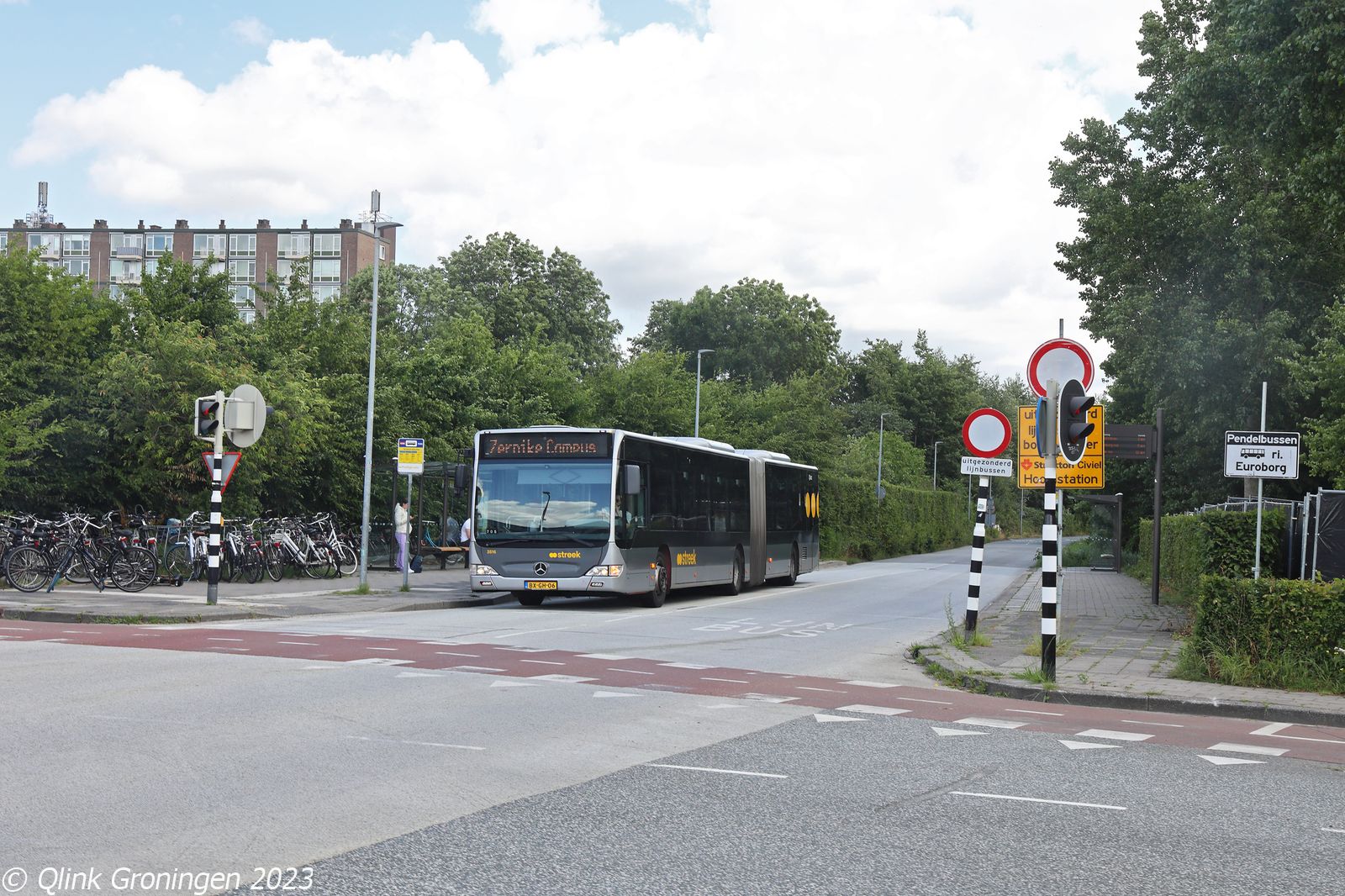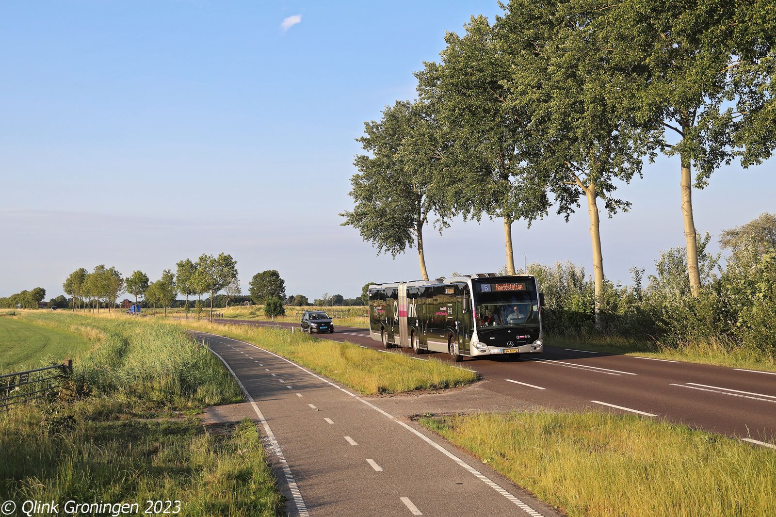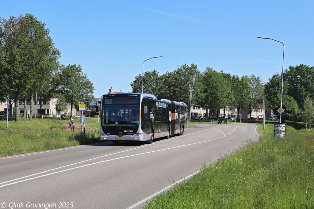 Na de Q-link reservebus op Q-link lijn 15 reed op 20 september ook een andere bijzondere bus op Q-link Oranje. Het betrof een elektrische Heuliez-bus in de Q-link Blauwe kleurstelling. Dagelijks rijdt sinds september 2023 een Blauwe Heuliez in de ochtend op deze lijn om de drukte op deze altijd drukke studentenlijn op te vangen. Hierdoor komen voor het eerst geplande Heuliez-bussen op Zernike. Op de foto op de Zernikelaan passeert bus 7419 als hij met een compleet volle bus bijna het eindpunt bij Zernike Noord heeft bereikt.