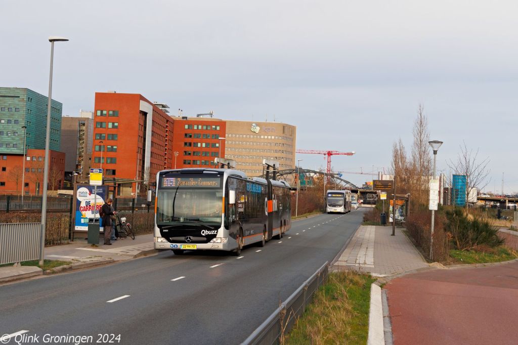 In de loop van 2024 zullen de Mercedes-Benz Capacity-bussen op Q-link 15 worden vervangen door eCitaro G-bussen van hetzelfde merk, zoals eerder vermeld. Hierdoor zullen de opvallende hoogcapaciteitsbussen uit het straatbeeld van Groningen verdwijnen. Op 14 maart 2024 was dit nog niet het geval toen bus 3401 de halte Verzetstrijderslaan passeerde. Wat deze bus bijzonder maakt, is dat hij een Citaro C1-front heeft gekregen na enige schade, waardoor hij een opvallende verschijning is. Op de foto is de bus onderweg als Q-link 15 richting Zernike vanaf het Hoofdstation.