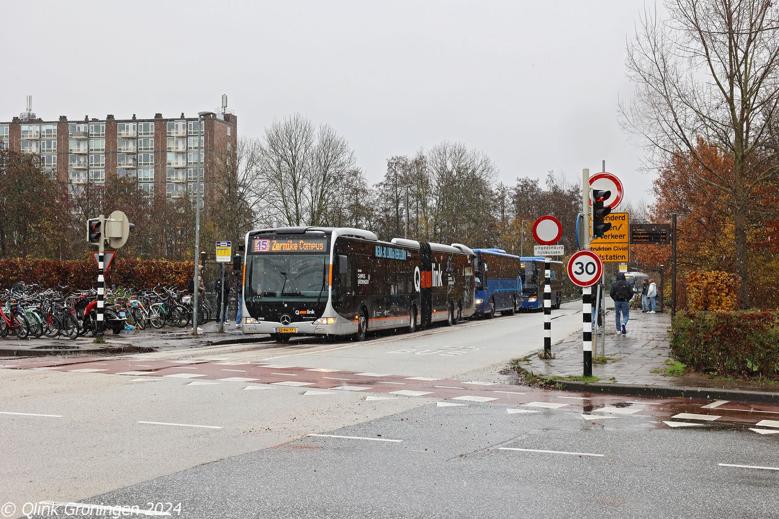 Sinds 18 november 2024 zijn de oranje Q-link Capacity-bussen weer dagelijks actief op Q-link lijn 15 tussen het Hoofdstation en de Zernike Campus. Deze bussen waren eerder vervangen door elektrische Q-link Mercedes-Benz eCitaro G-bussen. Vanwege de beperkte capaciteit van de eCitaro-bussen en het aanhoudende tekort aan voertuigen door het niet-leveren van de Ebusco 3.0-bussen, heeft Qbuzz besloten deze Capacity-bussen opnieuw in te zetten op Q-link 15. Vanaf 14 december 2024 wordt waarschijnlijk alle omlopen op deze lijn weer met de Capacity-bussen worden gereden. Op 21 november 2024 staat bus 3408 gereed bij de halte Verzetstrijderslaan en zal binnenkort vertrekken richting de Zernike Campus op Q-link lijn 15.