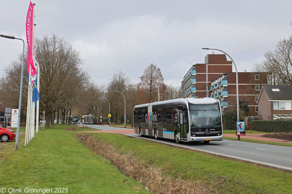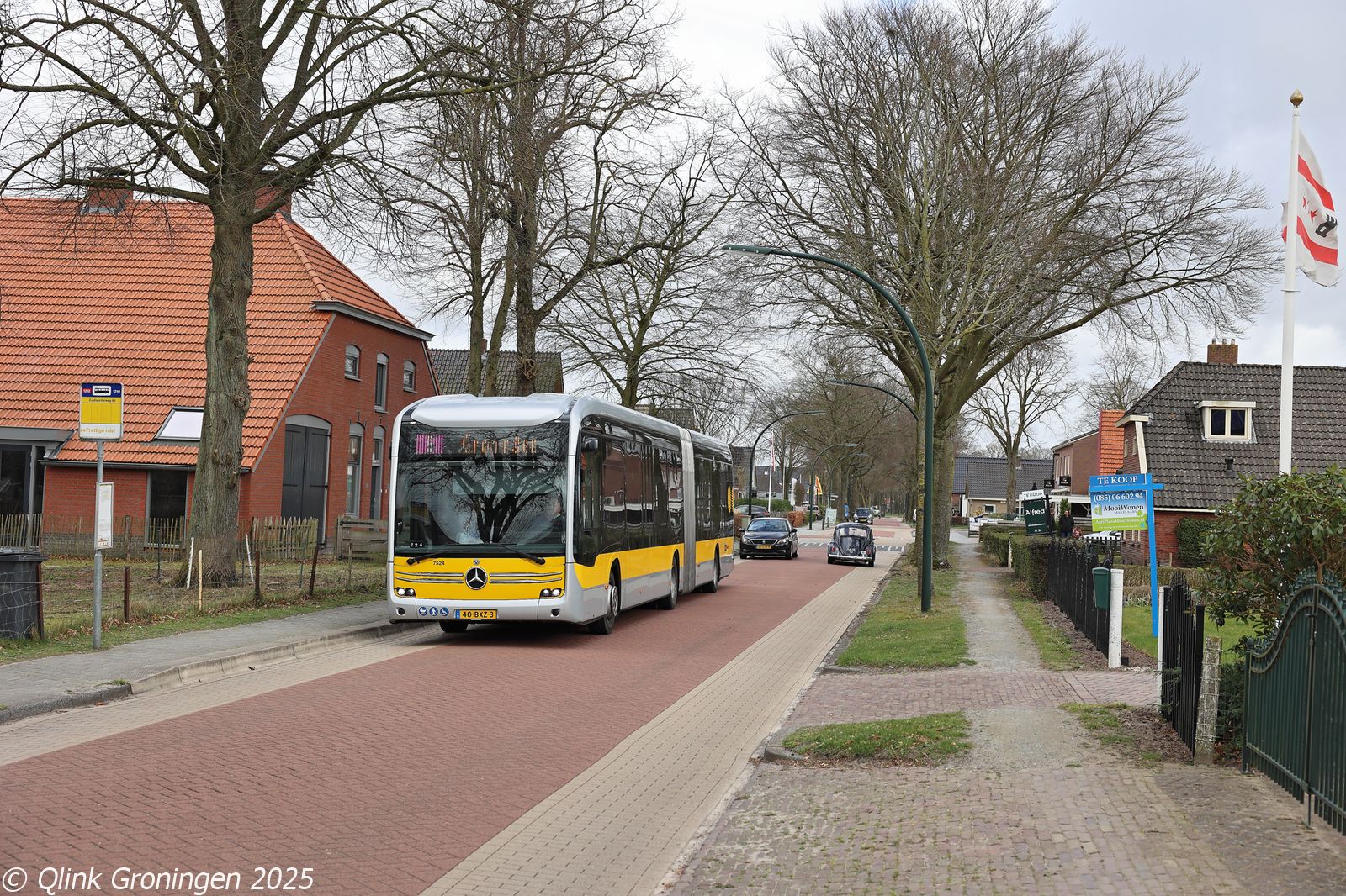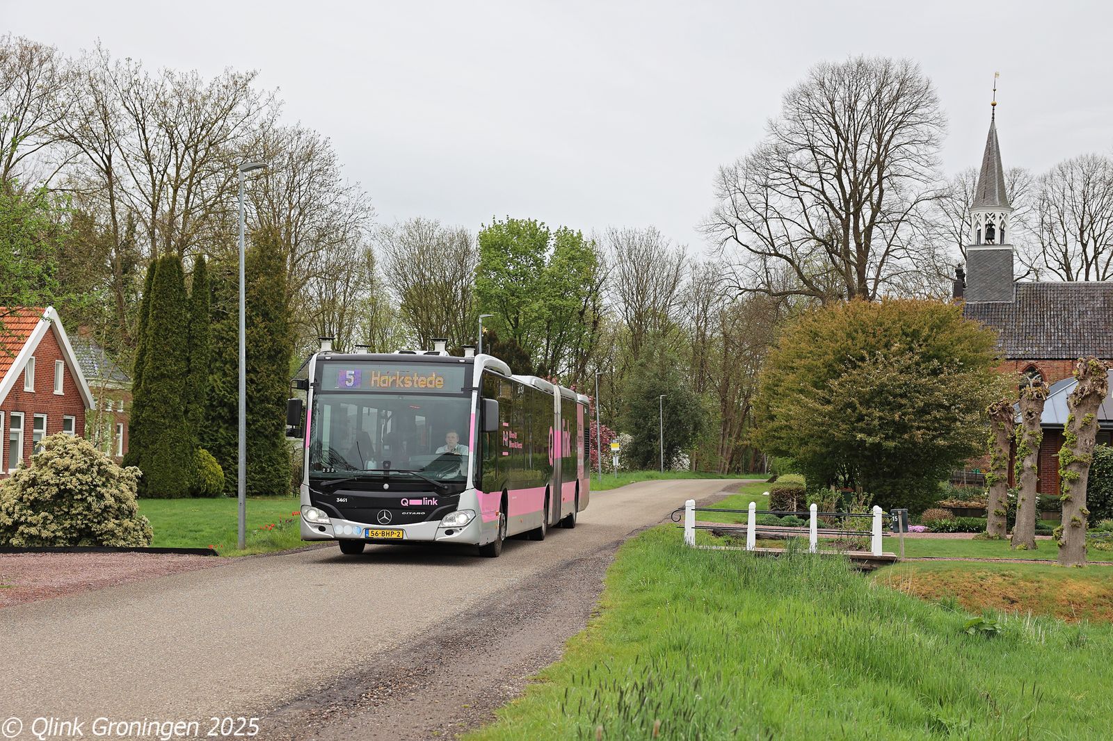 Ondanks dat de opvallende roze bus 3461 vaak actief is op zijn geplande Q-link 6 lijn, verschijnt hij sporadisch ook weleens op de andere Q-link Paarse lijn 5. Dit gebeurt vaak ter vervanging van een elektrische Heuliez-bus, die normaal gesproken op deze lijn rijdt. Hoewel het zelden voorkomt dat hij op lijn 5 rijdt, zijn de stickers op de bus wel voor beide Q-link Paars lijnen aangebracht.Op de foto passeert bus 3461 op 17 april 2024 de Middelberterweg in Middelbert. Hij is onderweg richting Engelbert en Harkstede.