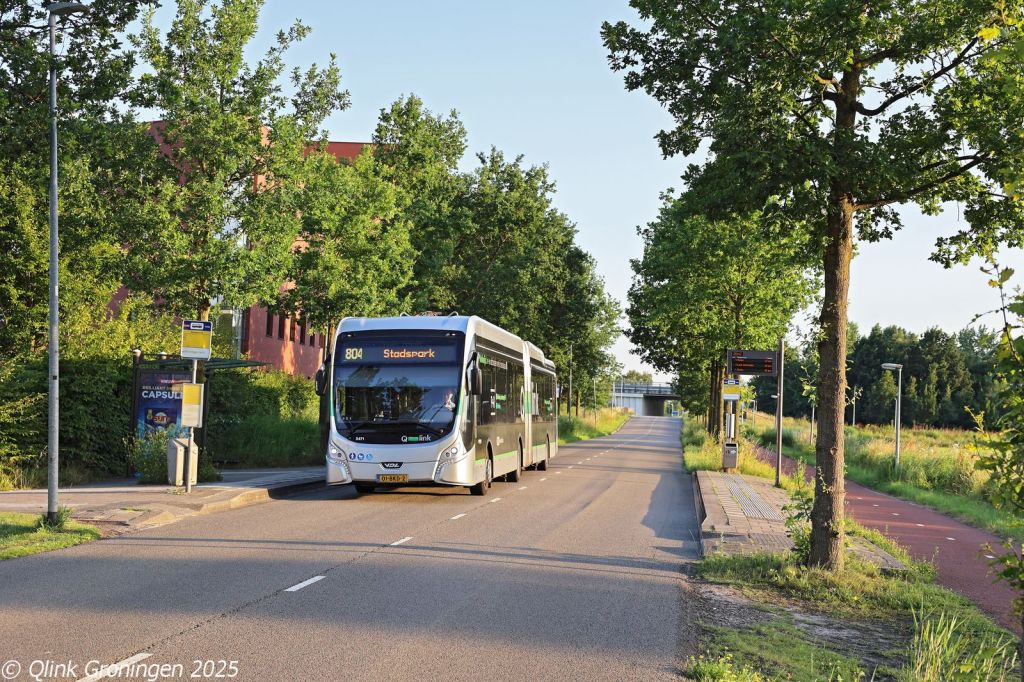 Op 1, 4 en 5 juli 2025 vond in het Stadspark van Groningen het evenement Summerstage plaats, waarbij opnieuw vele bekende artiesten naar Groningen kwamen. Om de grote stroom bezoekers naar het Stadspark te vervoeren, werd een speciale pendelbuslijn 804 ingesteld. Deze reed tussen P+R Haren en P+R Hoogkerk en deed daarbij de halte Verzetstrijderslaan aan, waarmee de drukte op de reguliere Q-link lijnen werd verlicht. De lijn werd grotendeels uitgevoerd met Q-link bussen, zoals Q-link Groen bus 3471, die op 1 juli 2025 als lijn 804 reed. Op de foto passeert deze bus de fotograaf ter hoogte van de halte Eemsgolaan, onderweg naar P+R Haren.
