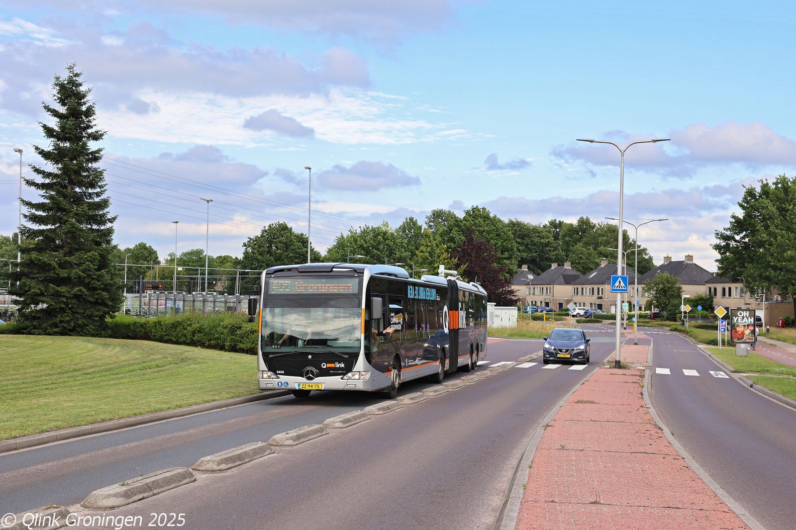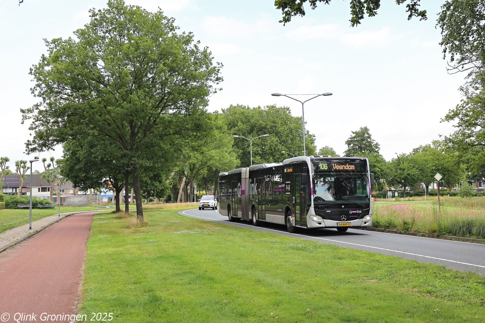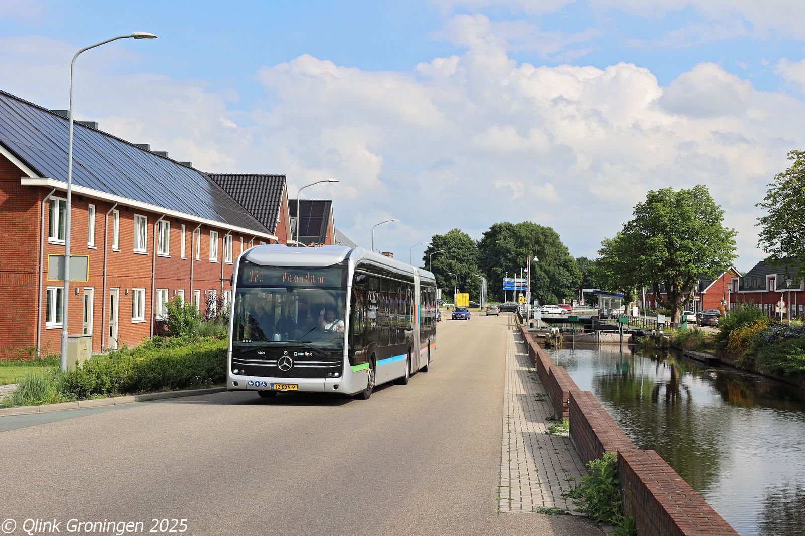 Na het pendelritje op lijn 22 tussen Westerbork en Beilen, werd bus 3412 ingezet op een andere lijn die alleen tijdens het TT-evenement rijdt: lijn 23. Deze lijn verbindt Westerbork met Assen via een rechtstreekse route door het kleine plaatsje Zwiggelte, waar normaal gesproken geen lijnbus meer doorrijdt. De inzet van een 21 meter lange bus op dit traject is dan ook een extra opvallende verschijning. Op de foto van 27 juni 2025 passeert bus 3412 op de Halerweg in Zwiggelte en is onderweg via Hooghalen naar Assen.