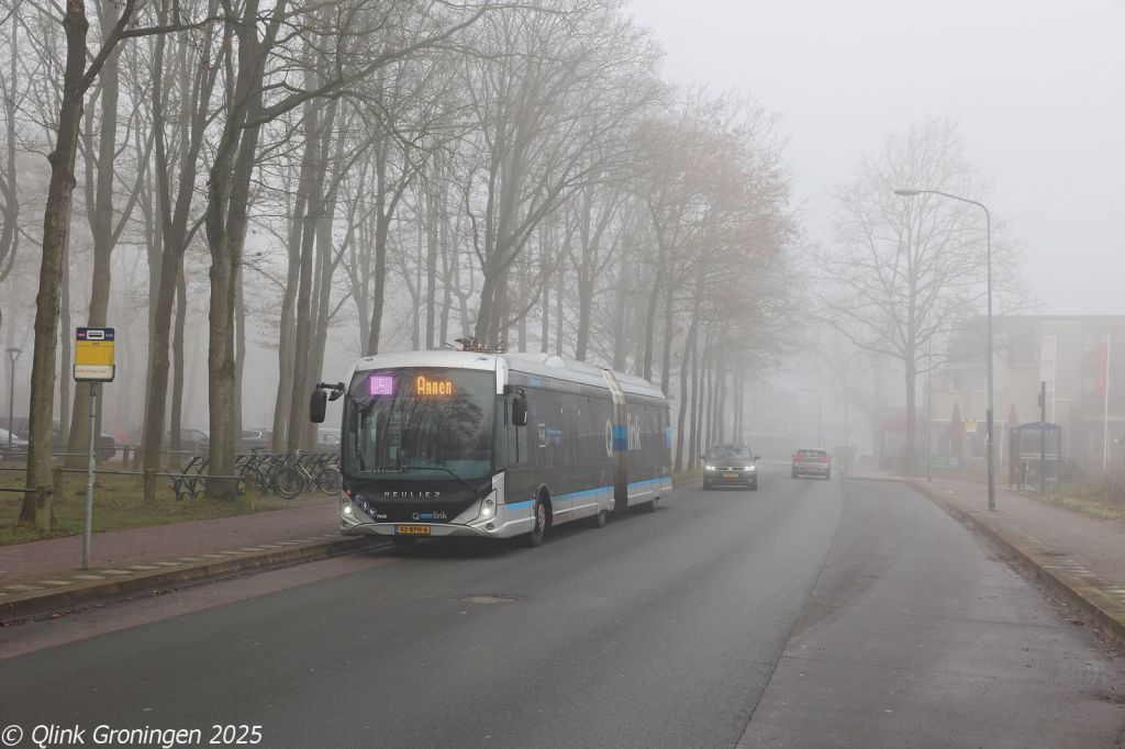 Naast de Q-link-reservebussen 3420 t/m 3423, die zijn bestickerd in het Q-link Multicolour-schema, werd ook reservebus eenling 3458 van de Mercedes-Benz Citaro G C2-serie uit 2016 van nieuwe stickers voorzien. Deze bus werd ooit aangeschaft voor de start van Q-link 6. Sinds het begin rijdt bus 3458 al zijn rondjes als Q-link-reservebus. Waar hij eerst een wit/grijze kleurstelling had, is hij nu opgefleurd met alle Q-link-kleuren. Op de foto van 25 december 2025 staat bus 3458 gereed bij P+R Meerstad en zou zo dadelijk als Q-link 5 vertrekken richting het Hoofdstation en Annen.