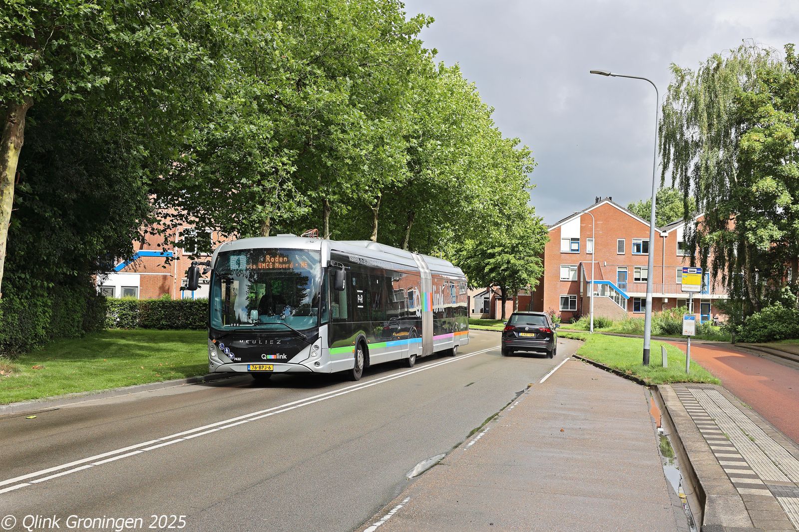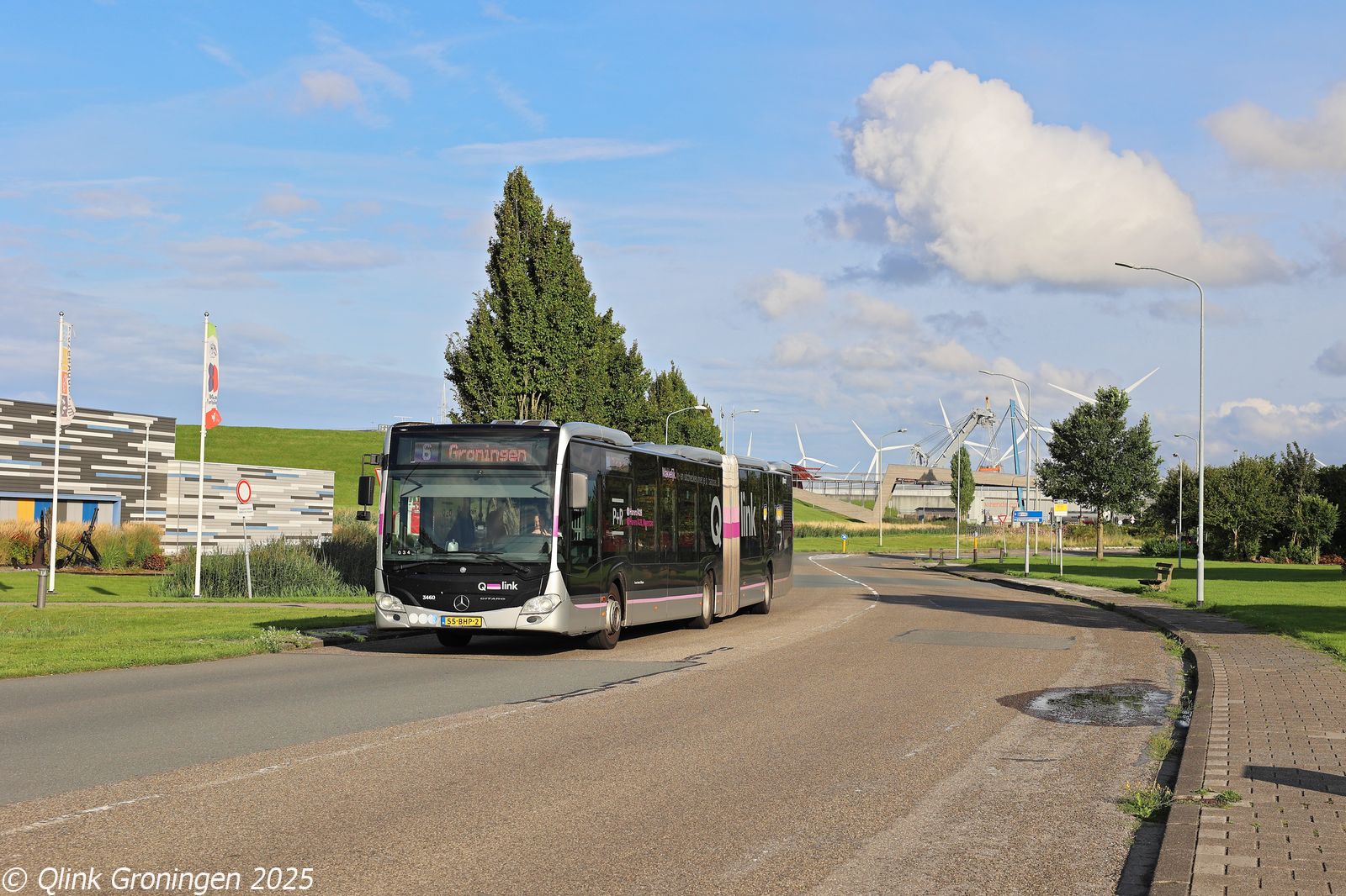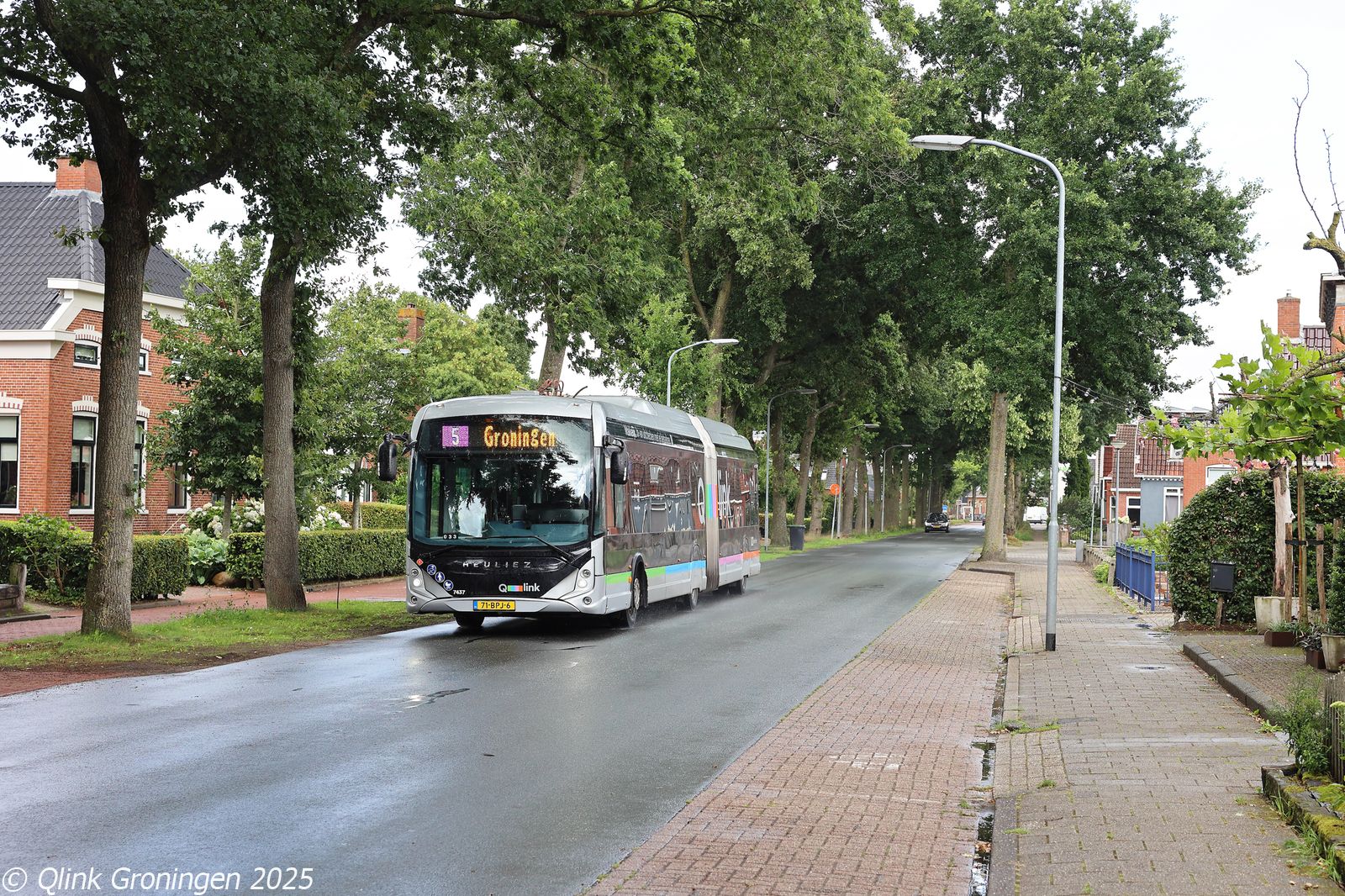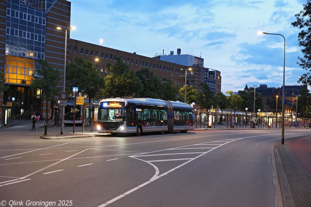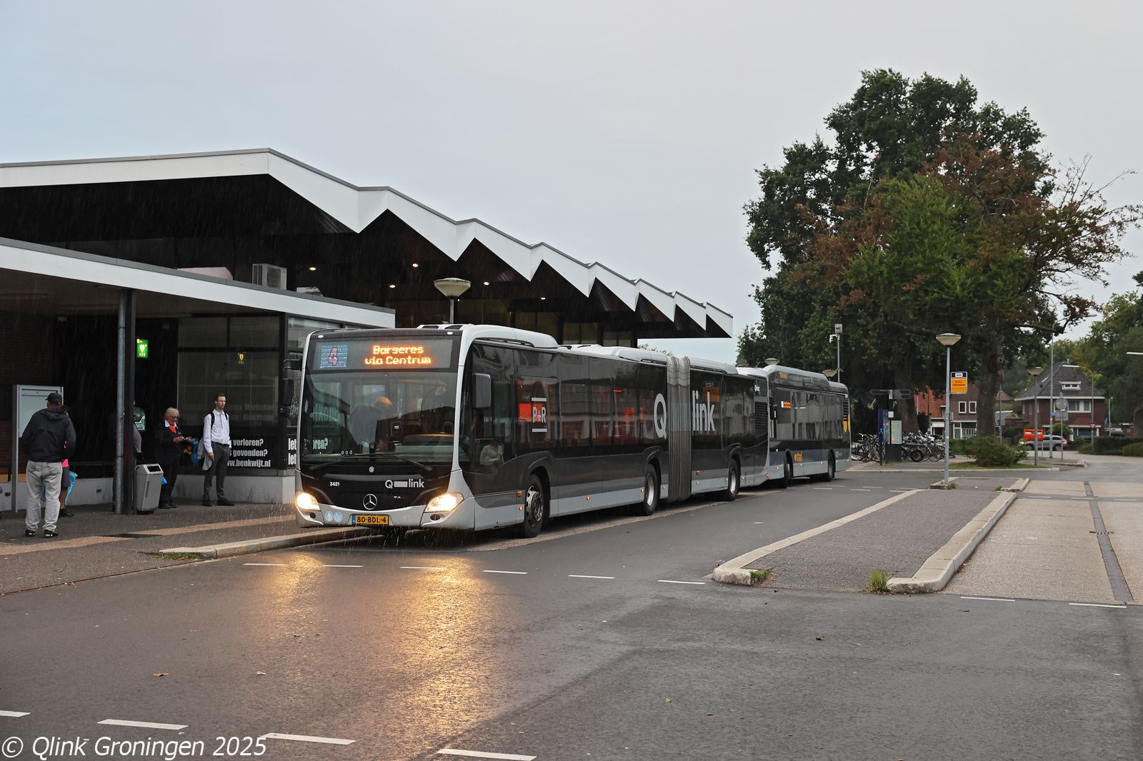 Wegens het jaarlijkse evenement de Gouden Pijl in Emmen reden er veel extra ritten op de streek- en stadsdienstlijnen in en rond deze plaats. Deze ritten werden deels uitgevoerd met de reserve Q-linkbussen uit de serie 3420–3423, die hiervoor speciaal naar Drenthe waren gestuurd. Ook de Emmer stadsdienst reed, in tegenstelling tot normaal, in de avond elk half uur. Op de extra ritten werd onder andere Q-link reservebus 3421 ingezet. Op de foto staat deze bus op het station van Emmen, gereed om als lijn 4 richting de wijk Bargeres te vertrekken op 3 augustus 2024.
